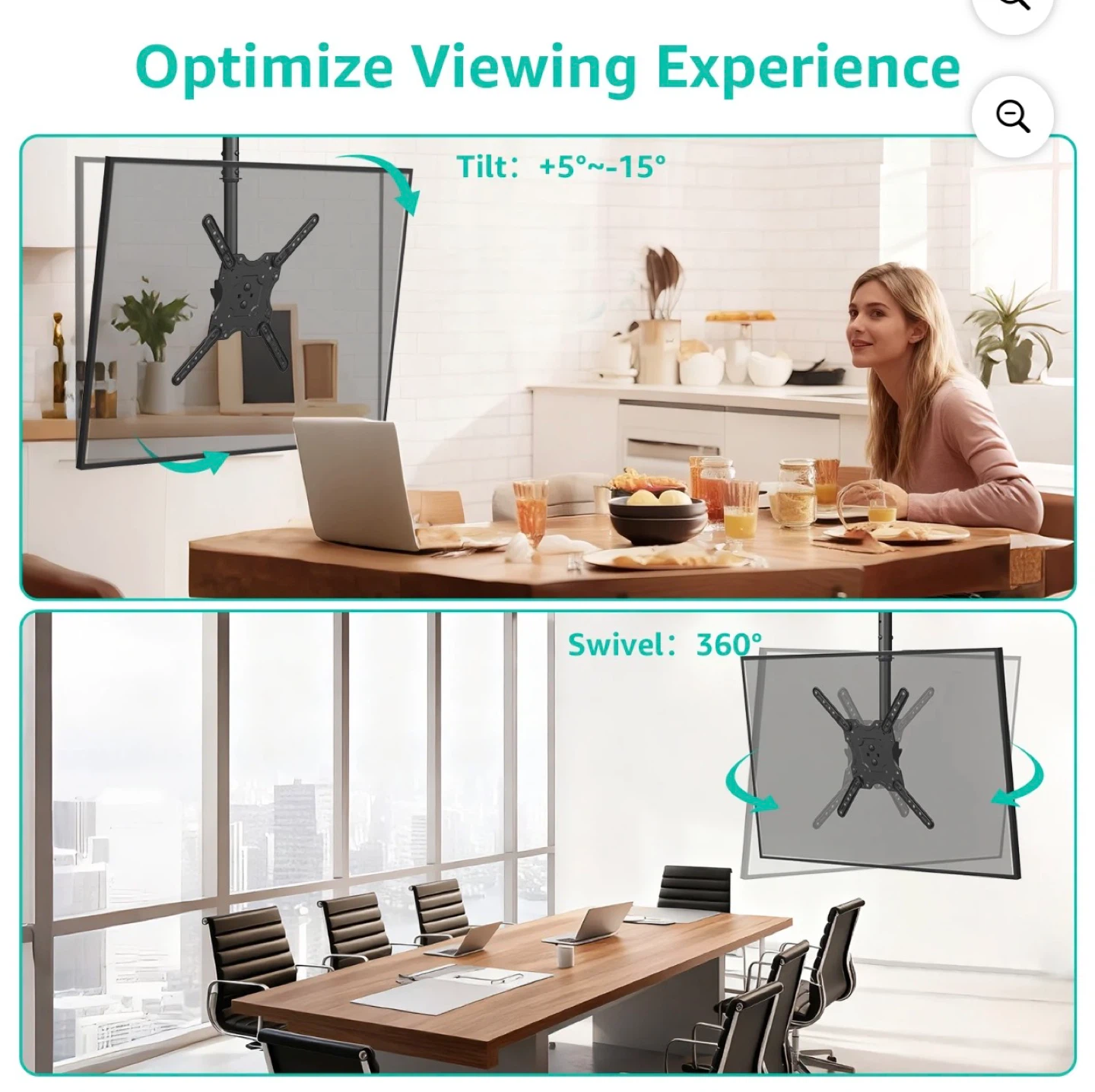 MOUNT PRO Ceiling TV Mount for Most 26-65 inch TVs, 8 Height Adjustable Settings Full Motion Swivel and Tilt Hanging TV Wall Mount Bracket, Max VESA 400x400mm, Holds up to 99 lbs