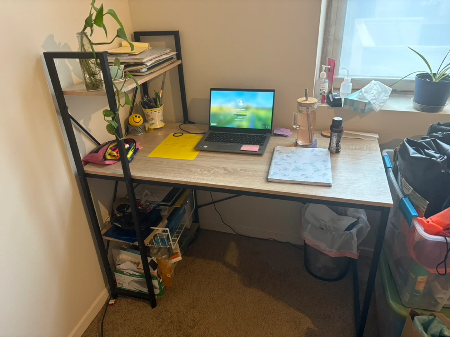 MOVING SALE- Wooden Desk with Storage Shelves