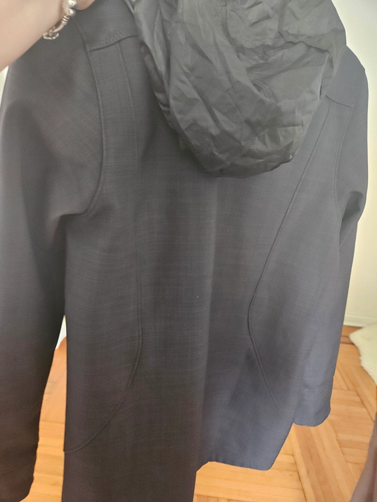 Beautiful jacket winter break for walking park great condition like new color grey comes with litter hoodie for rain .