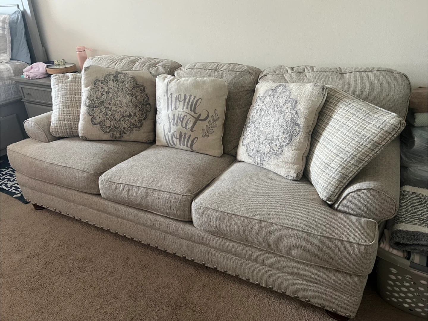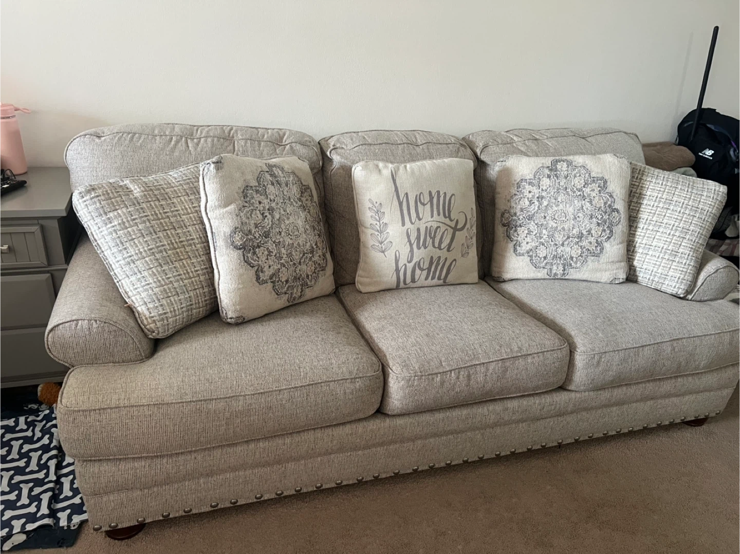 Selling a comfortable sofa from Jackson Furniture Company. It's in good condition and ready for a new home! The sofa is made of polyester fiber batting and regenerated polyester fiber batting.