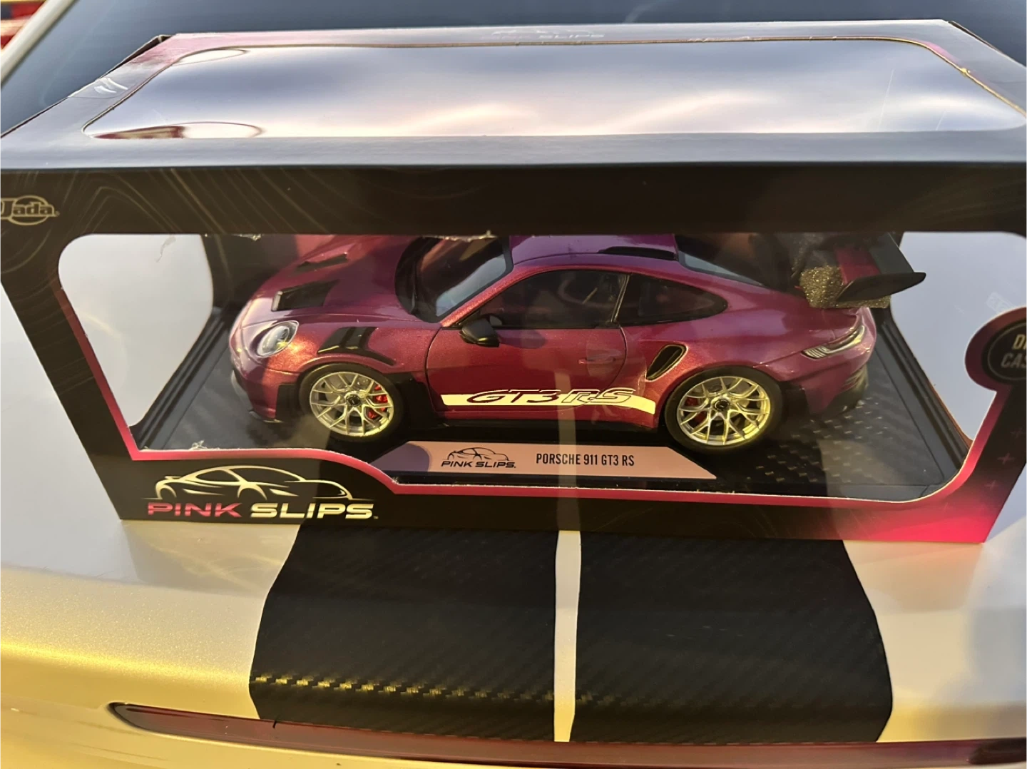 25Selling a Jada Toys Pink Slips Porsche 911 GT3 RS model car! The box is included. It's a beautiful model and would be great for any car enthusiast