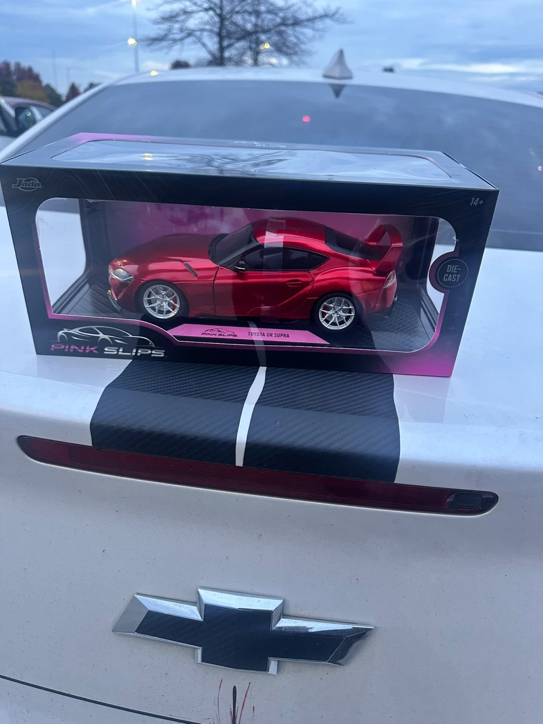 25Selling a Jada Toys Pink Slips Toyota GR Supra die-cast car! It's still in its original packaging, making it a great collectible for car enthusiasts and fans of the Supra