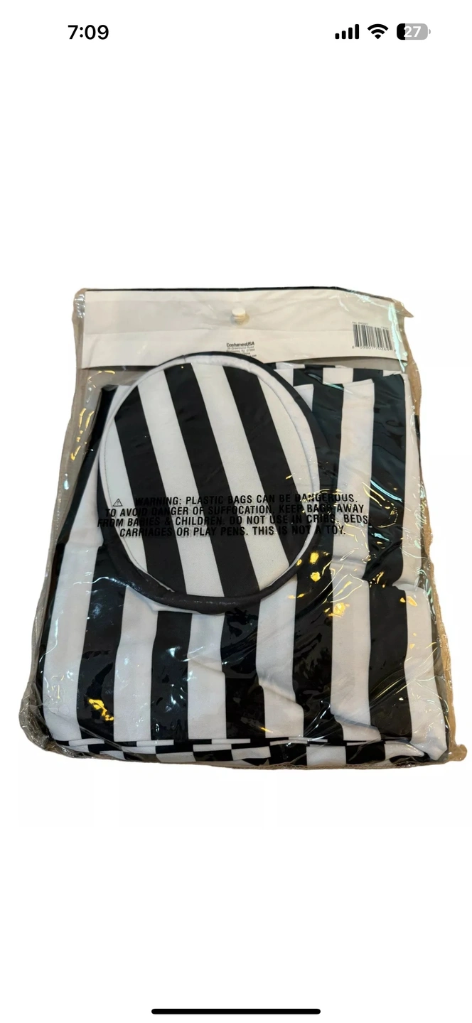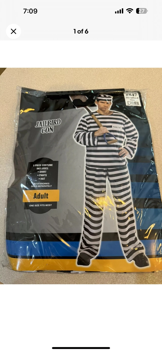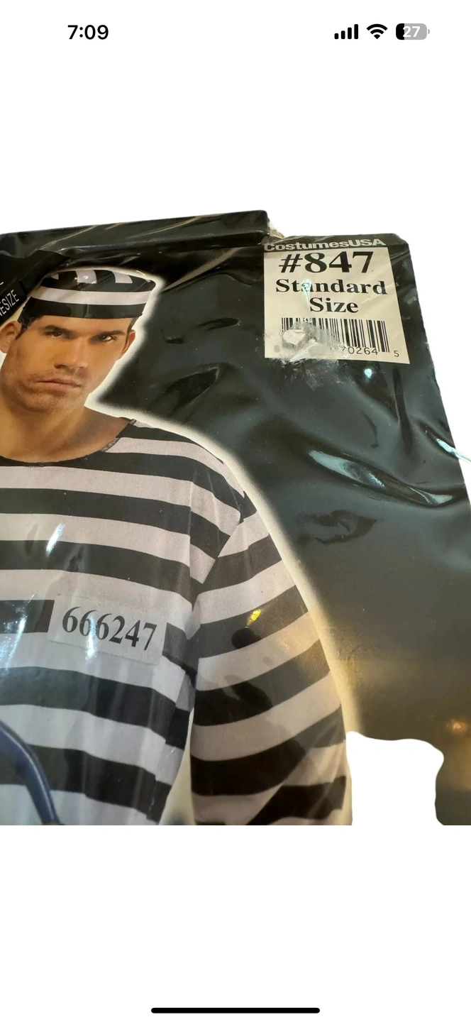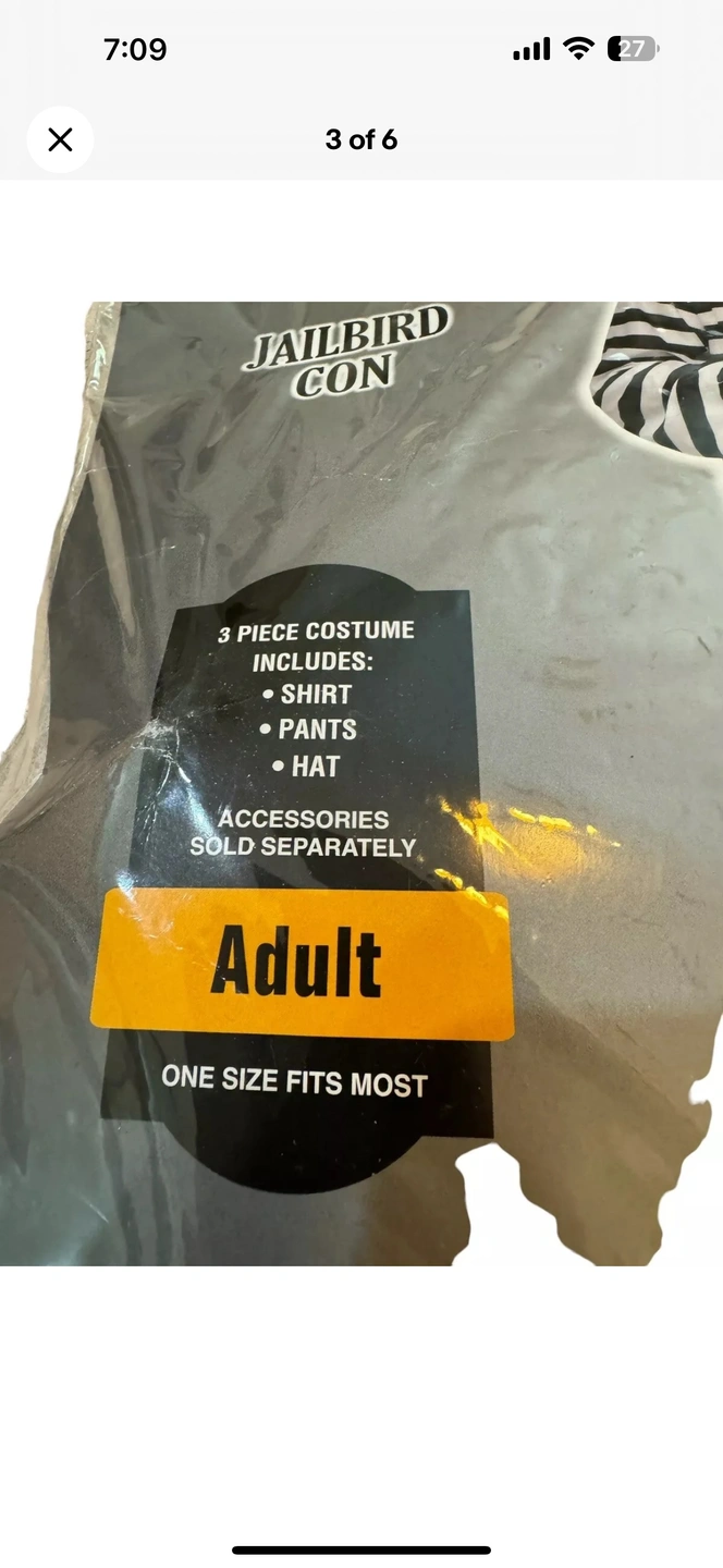 Adult 3 piece costume including pants, shirt, and hat. One size fits most.