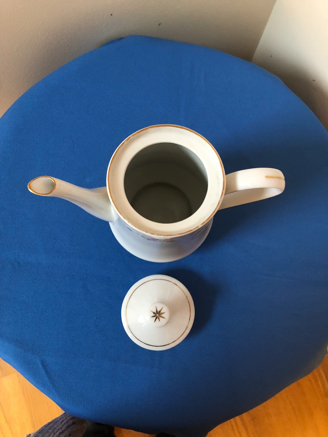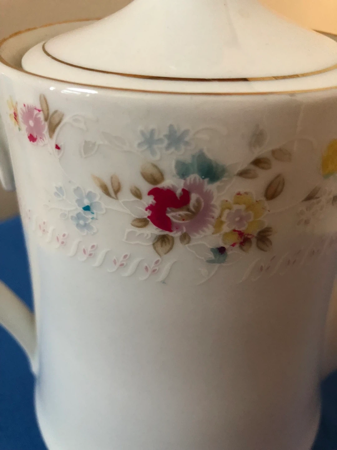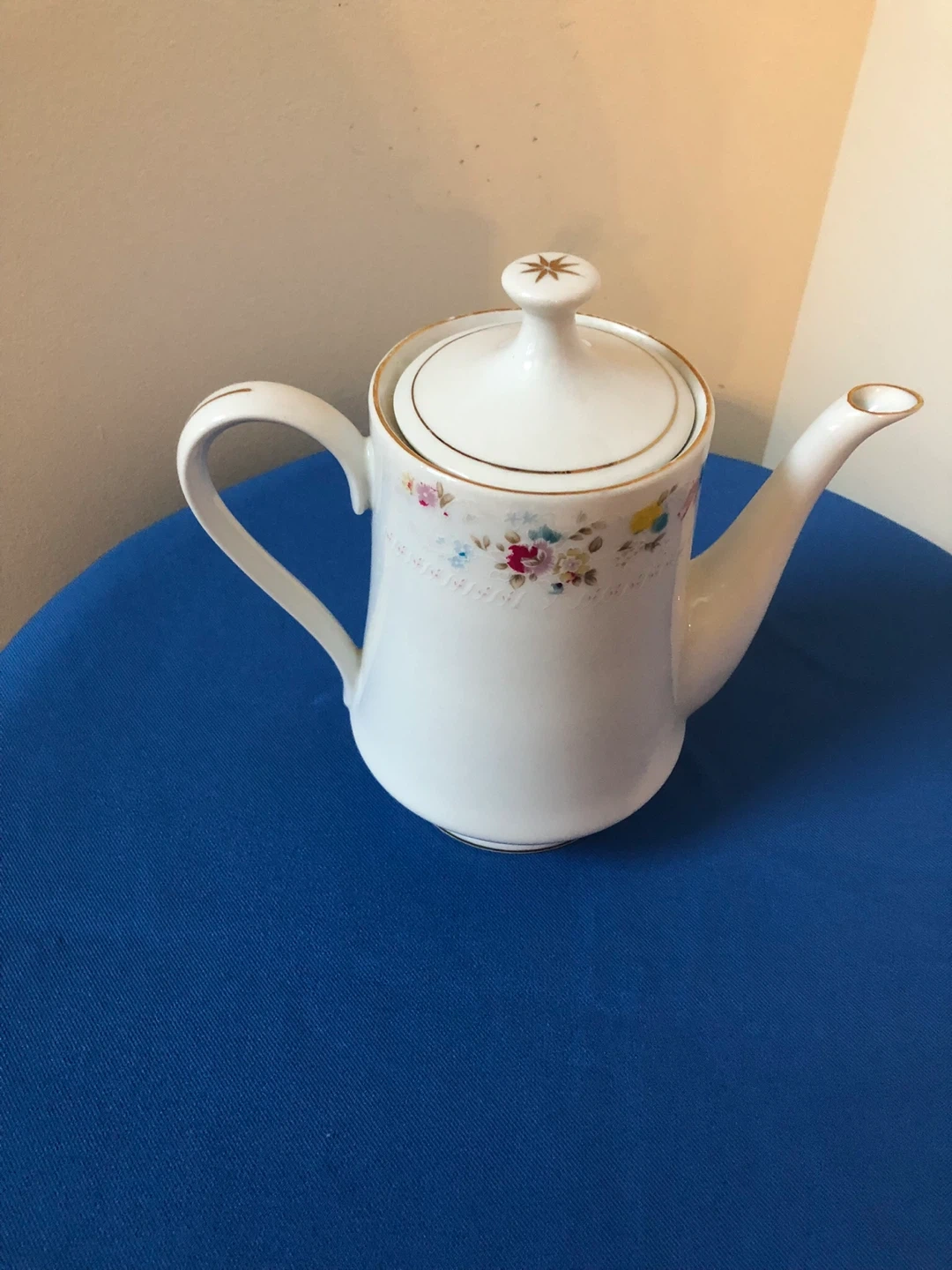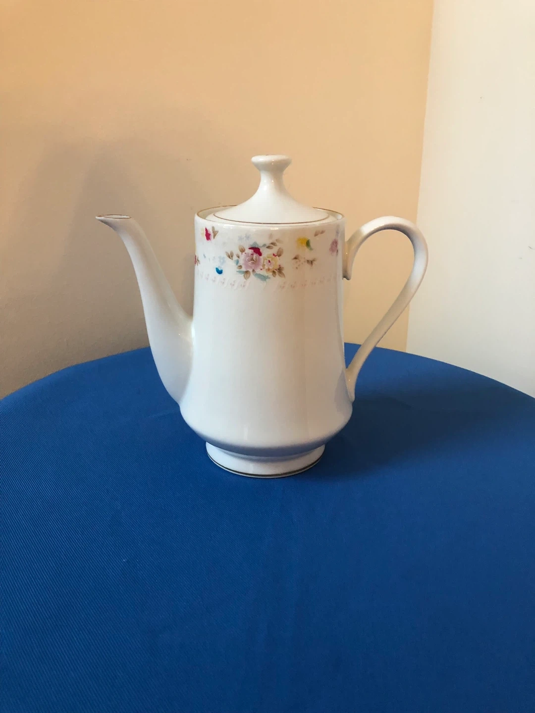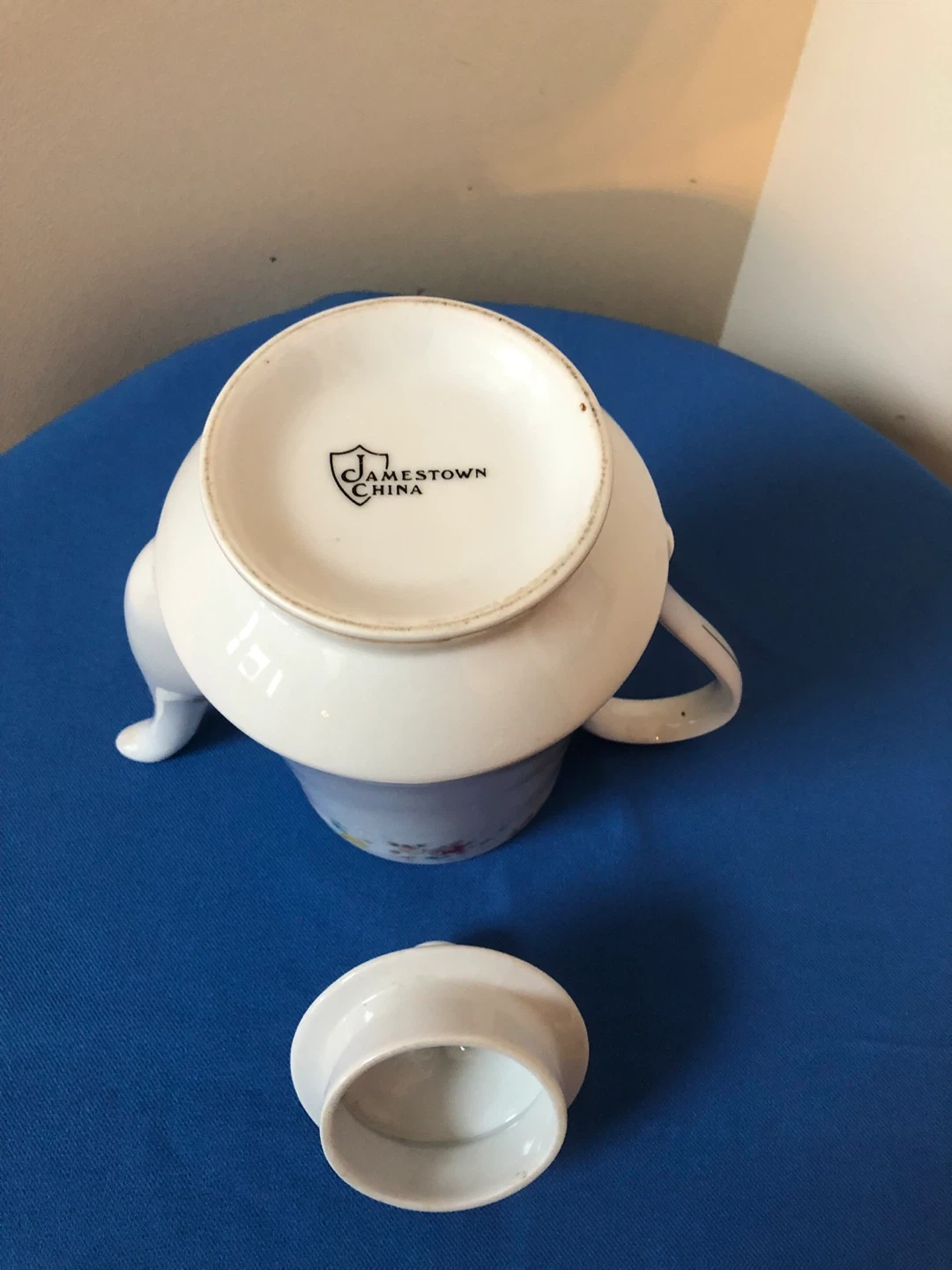 95Selling a lovely Jamestown China teapot! It features a delicate floral design and gold trim. It's in great condition and would be a charming addition to any tea or coffee set. It is 7 inches tall and around 9 inches with the top on.