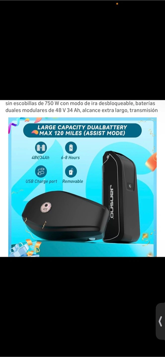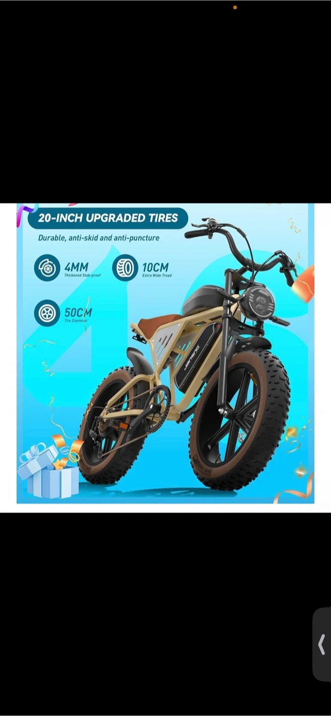 Selling a JANSNO electric bike with 20-inch upgraded tires. Key features include: - Durable, anti-skid tires - 4MM thickened stab-proof design - 10CM extra wide tread - 50CM tire diameter It has a large capacity dual battery with max 120 miles (assist mode).