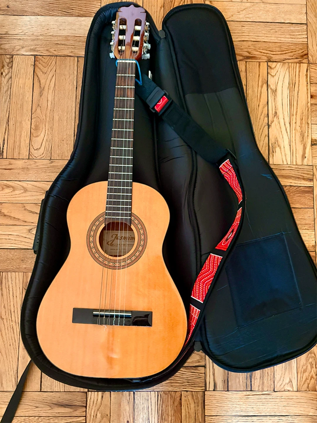 10Selling a Jasmine JS141 1/4 scale acoustic guitar that's in great shape! It comes with a Road Runner guitar case, so it's easy to carry around and keep protected. The guitar has a lovely warm tone and is perfect for beginners, kids or anyone looking for a reliable instrument