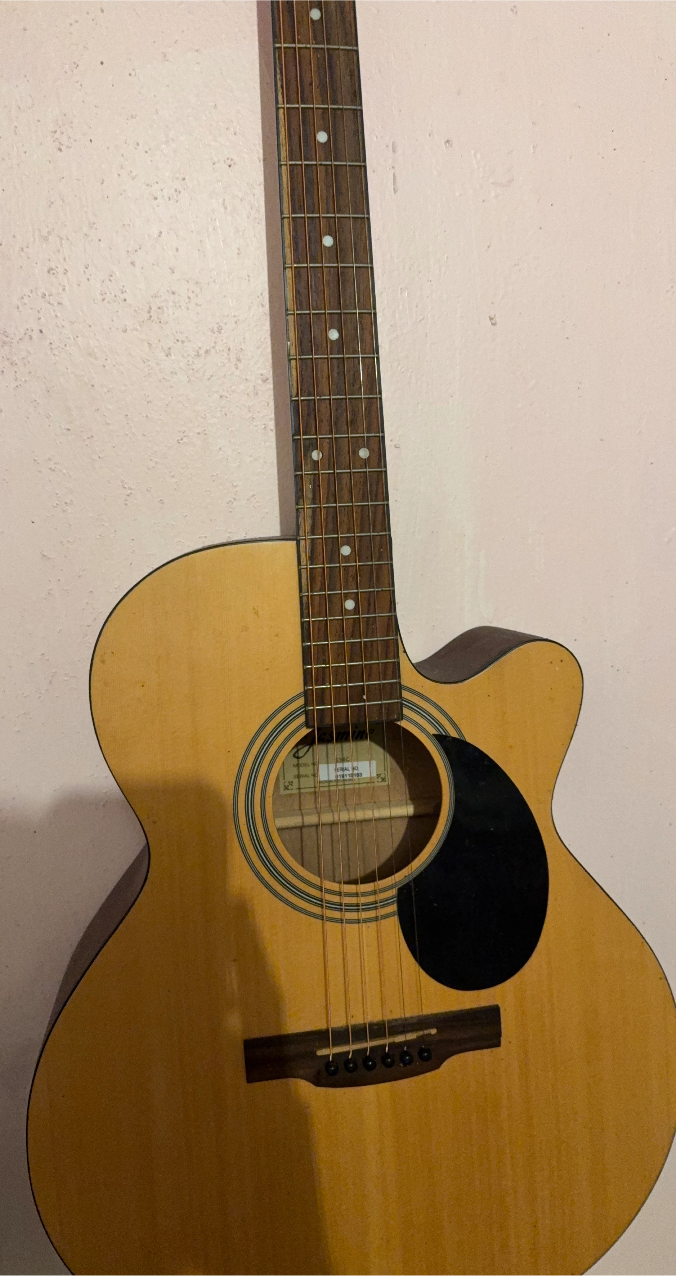 Selling a Jasmine S35C acoustic guitar. It's in good condition and ready for someone to play! The serial number is 110112103