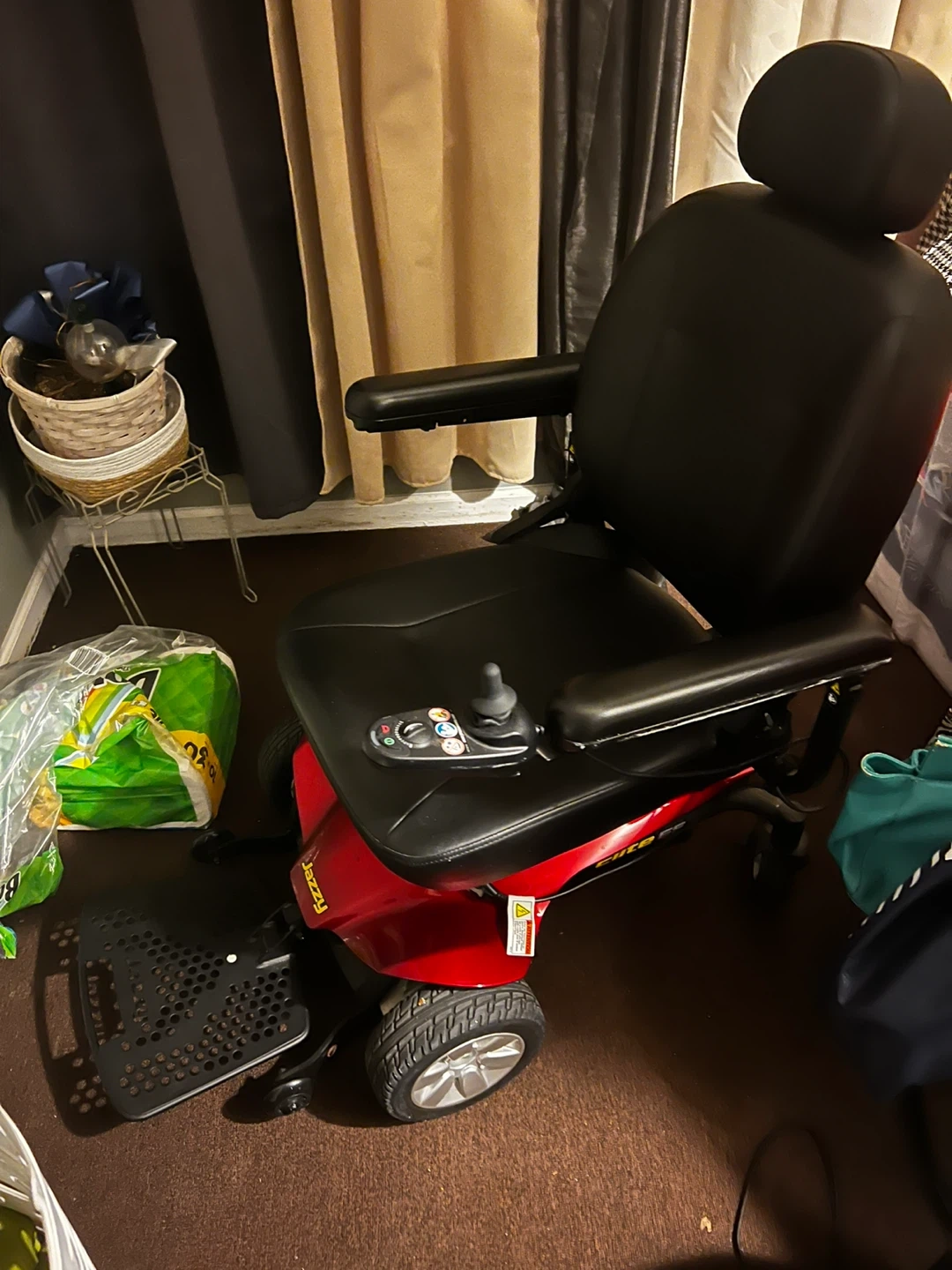 60Selling a Jazzy Elite ES power wheelchair. It has a black seat and a red base. It's in good condition and ready to go!