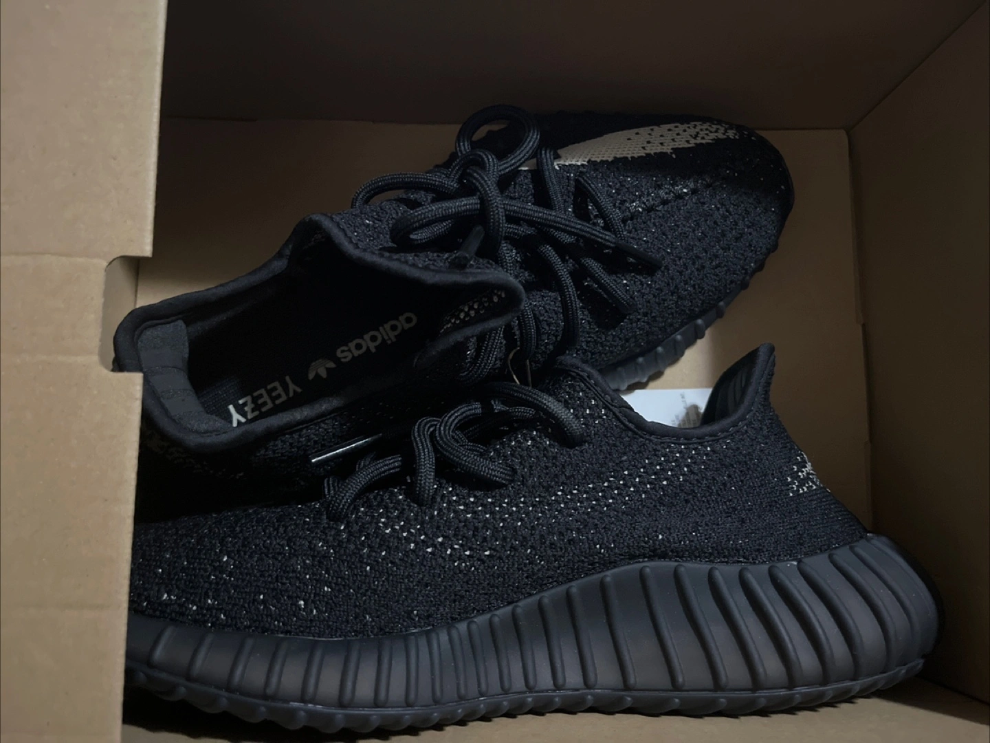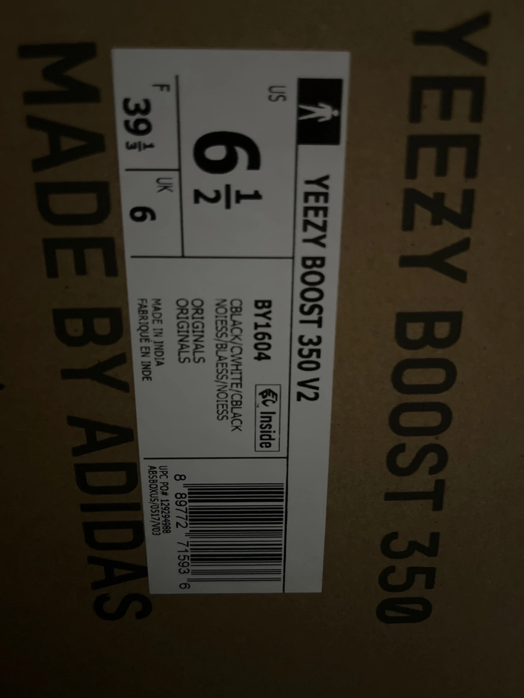 Selling a pair of Adidas Yeezy Boost 350 V2 in CBLACK/WHITE/CBLACK. These are a size 6.5 US. The box is included! Brand new.