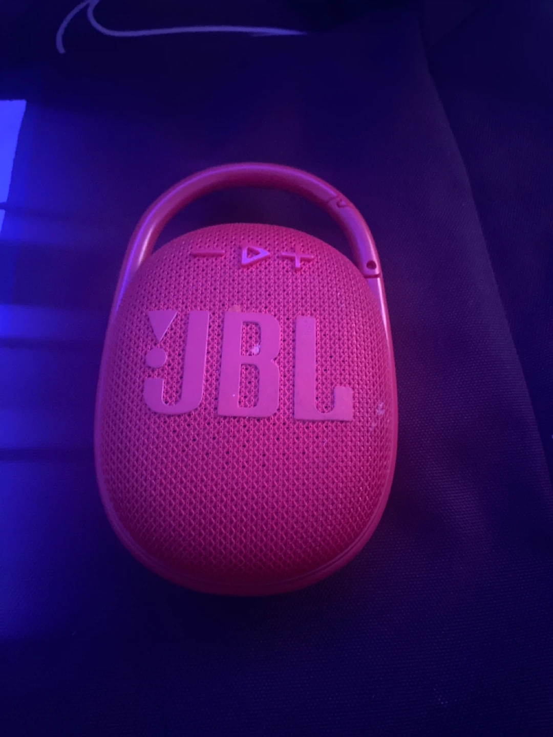20Selling a pink JBL Clip 4 portable Bluetooth speaker. It's in great condition and ready to clip on to your bag or belt loop! Enjoy rich sound and punchy bass wherever you go. It's lightweight and easy to carry around, perfect for on-the-go listening