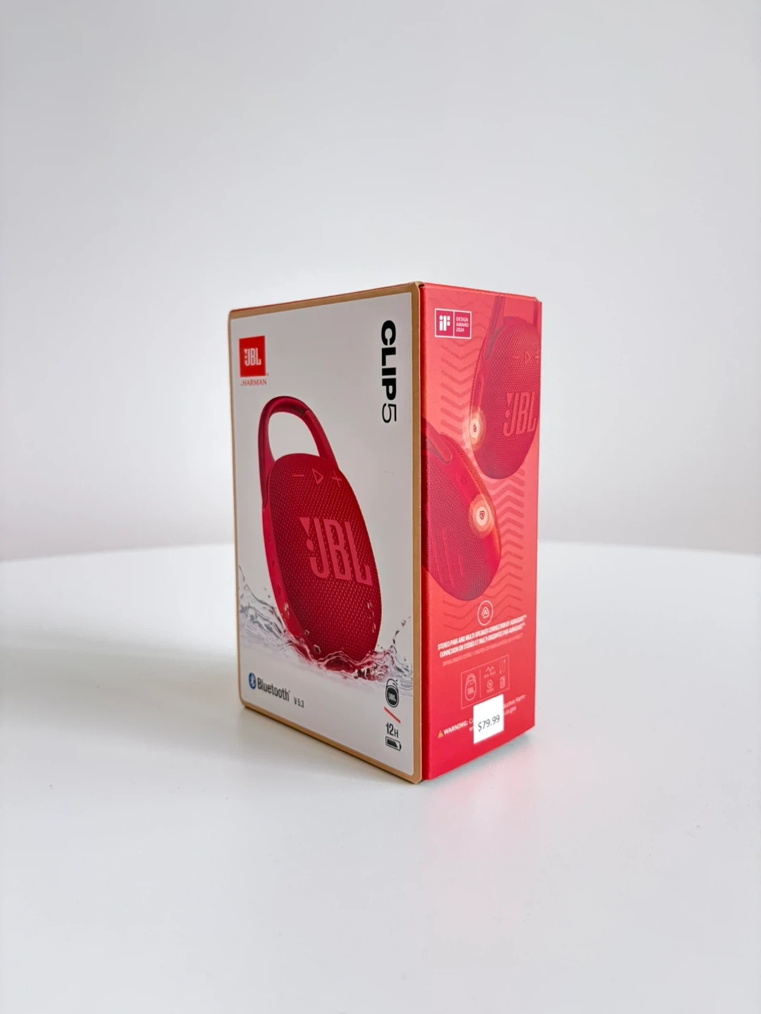 Selling a brand new JBL Clip 5 in red! It's a portable Bluetooth speaker that's perfect for on-the-go listening. The box is included. Originally priced at $79.99