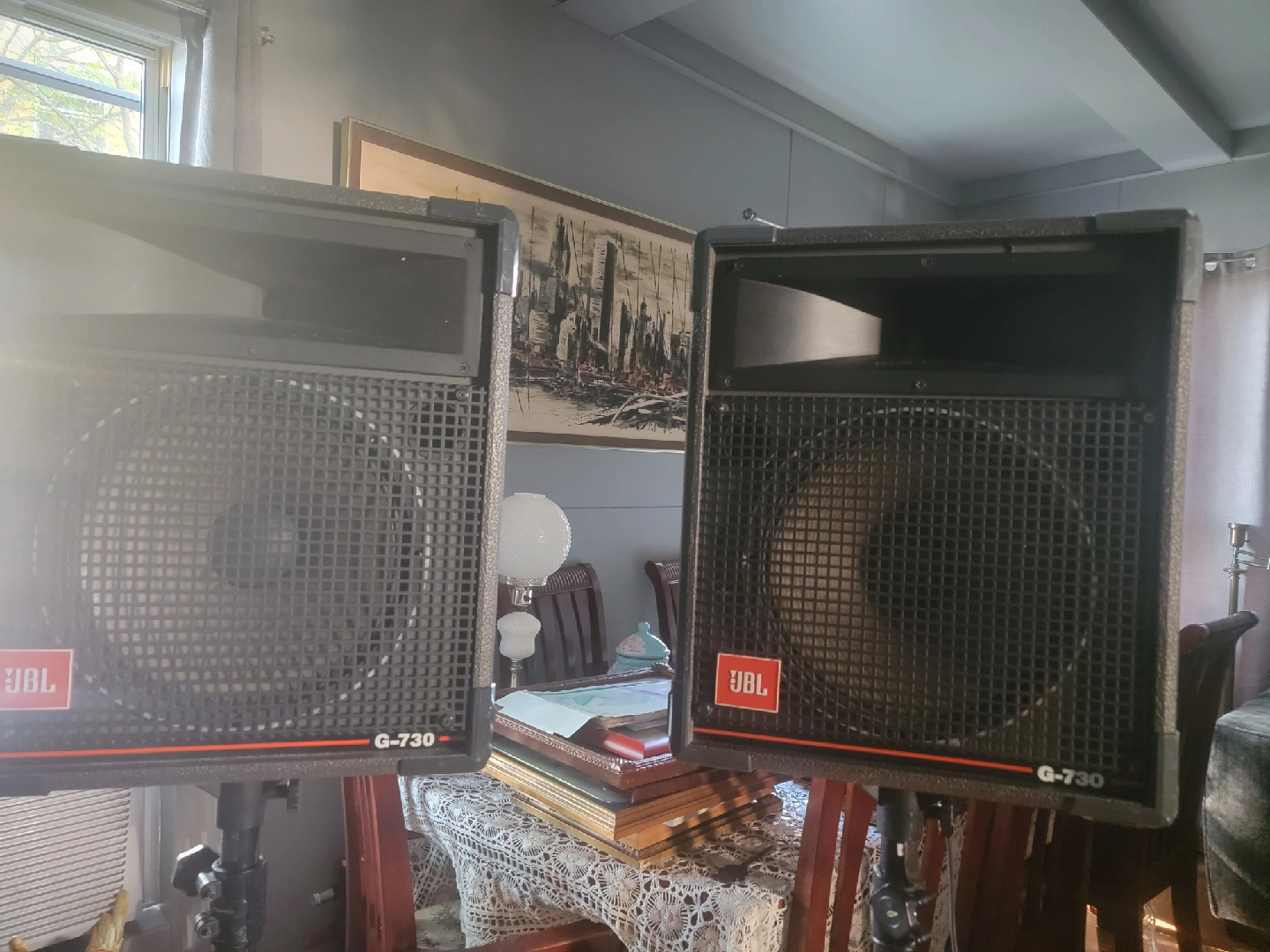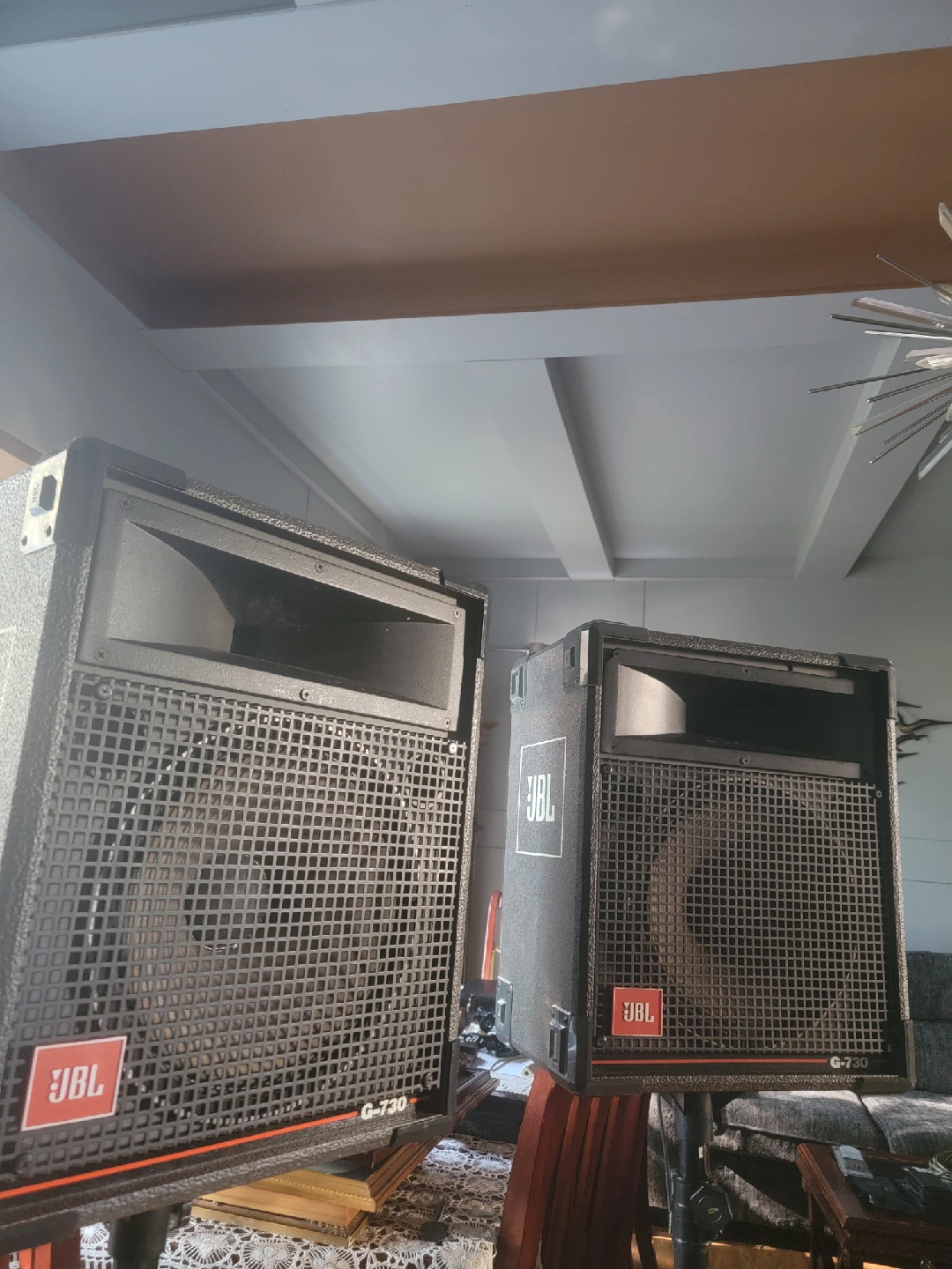 Selling a pair of JBL G-730 speakers! They're in good condition and ready to amplify your sound. Perfect for events, parties, or just enjoying your favorite music at home