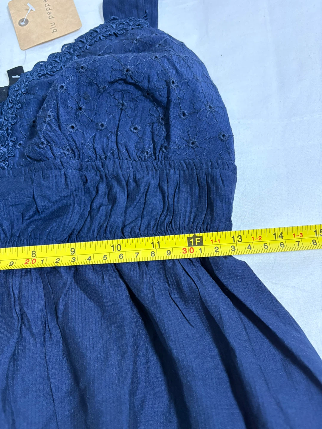 Blu Pepper Navy Eyelet Dress with Tie Straps
