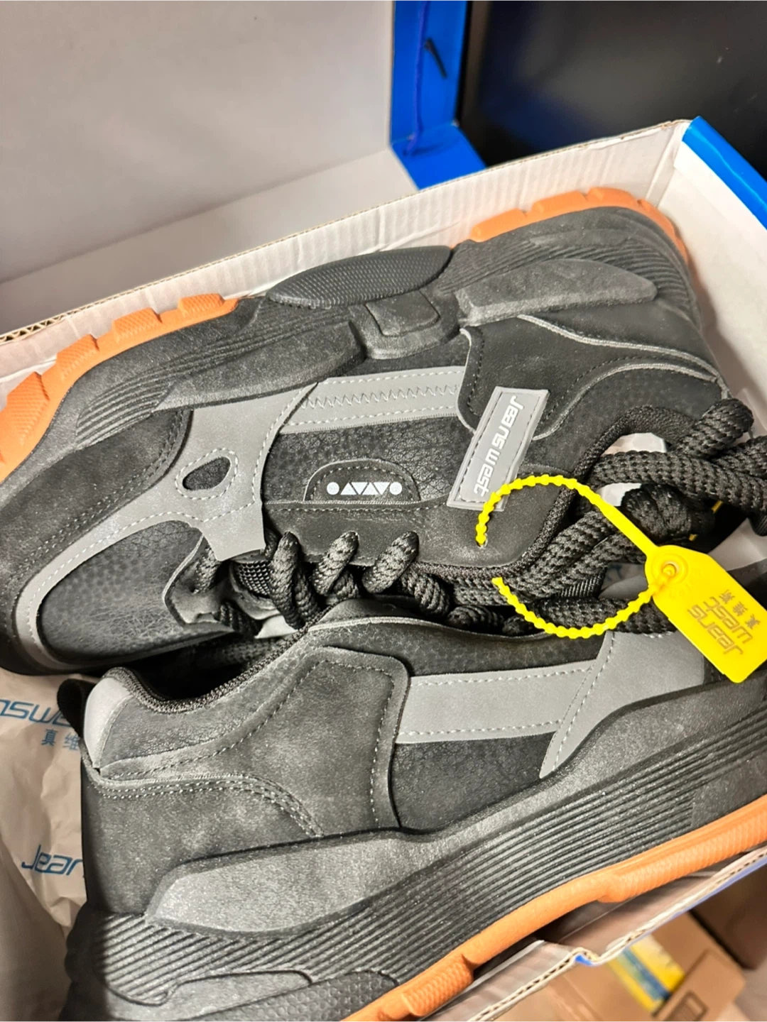 Selling a pair of Jeans West men's shoes in US size 9. They come with the original box! The shoes are black with gray accents and an orange sole.