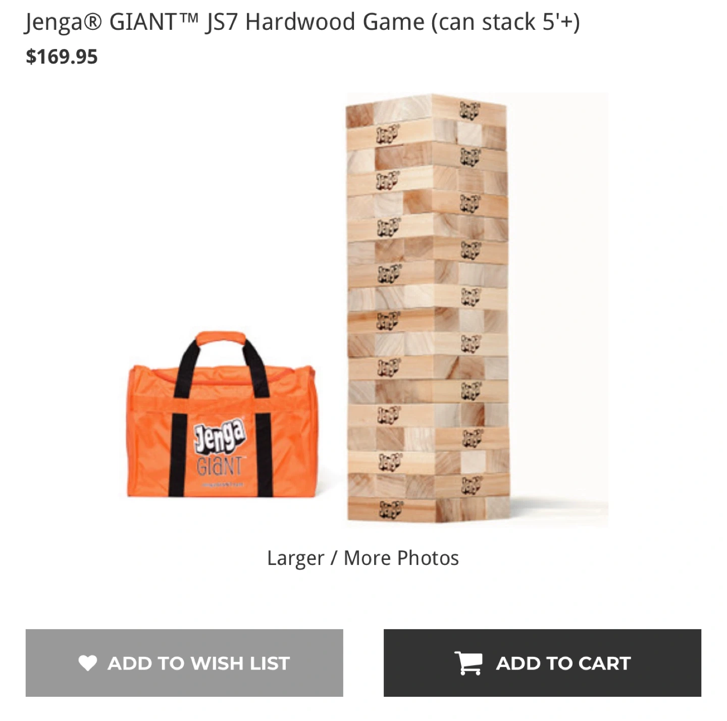 65Selling a Jenga GIANT JS7 Hardwood Game that can stack 5'+! It's in like-new condition and comes with the original box. This is the real deal, not a cheaply made knockoff. Originally bought for $169.95. Perfect for parties, family gatherings, or just a fun night in! Can be pick up or happy médium Brooklyn NY