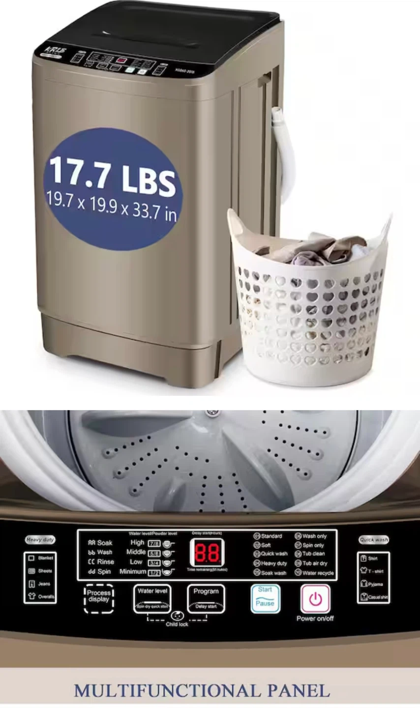 JEREMY CASS Full-Automatic Top-Load Washer, a compact yet powerful solution for modern living. Designed for efficiency, this 1.38 cu. ft. washer combines 10 customizable programs and 8 water levels, LED controls, and auto-spin drying to deliver a thorough clean with minimal effort. Perfect for apartments, RVs, dorms, or small homes, its space-saving design doesn't compromise performance. The stainless steel drum ensures durability, while smart features like Delay Start and Auto Unbalance Detection enhance convenience. Life saver, only selling it because I’m moving to a place with a washer dryer! Pick up only.