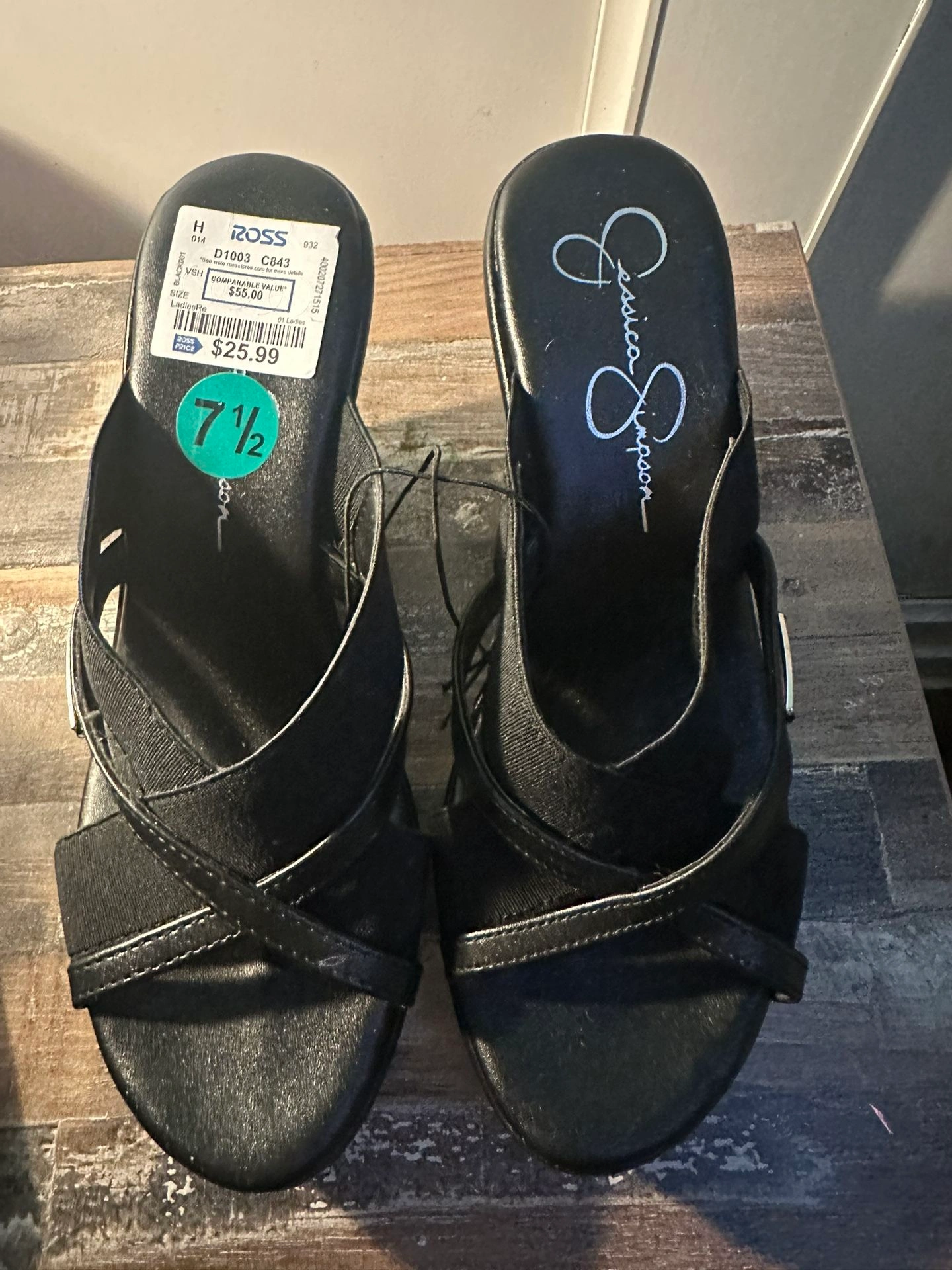 New with tags, Jessica Simpson black sandal wedges Cash only at pickup Will bundle with other items that are labeled as such for deal Size: 7.5 Color: Black Brand: Jessica Simpson