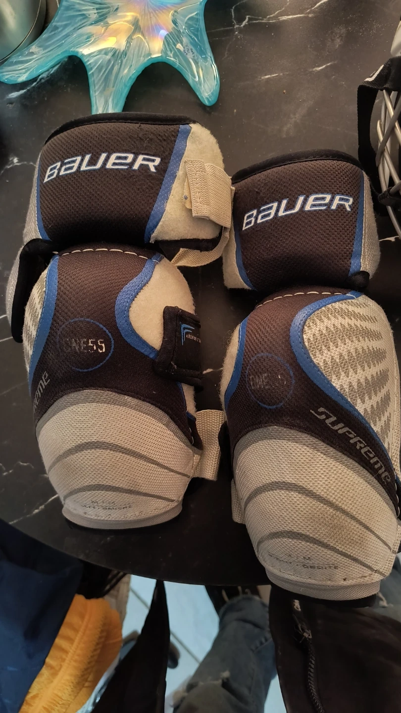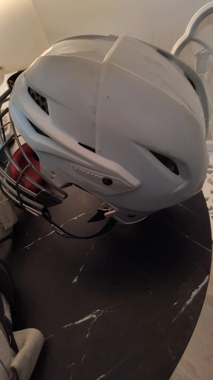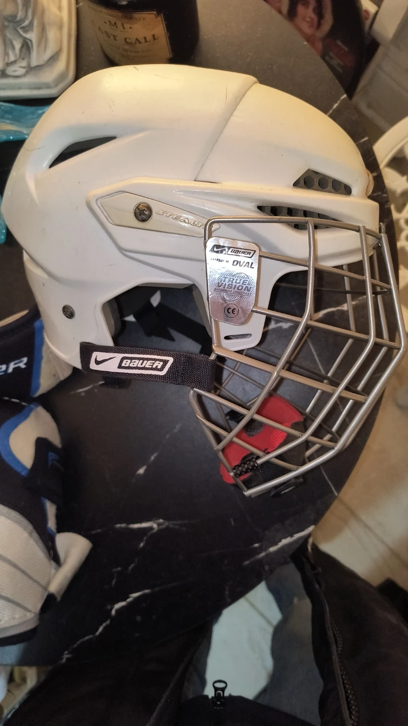 This is an Easton S9 Pro helmet in size medium. It includes a cage and Bauer Supreme shin guards. This gear is essential for playing ice hockey! FOR $50 YOU GET EVERYTHING THAT'S PICTURED! SKATES HELMET, THE UNDER GARMENTS FOR THE PADS, ALL OF IT! DEAL! DEAL! DEAL!!!!