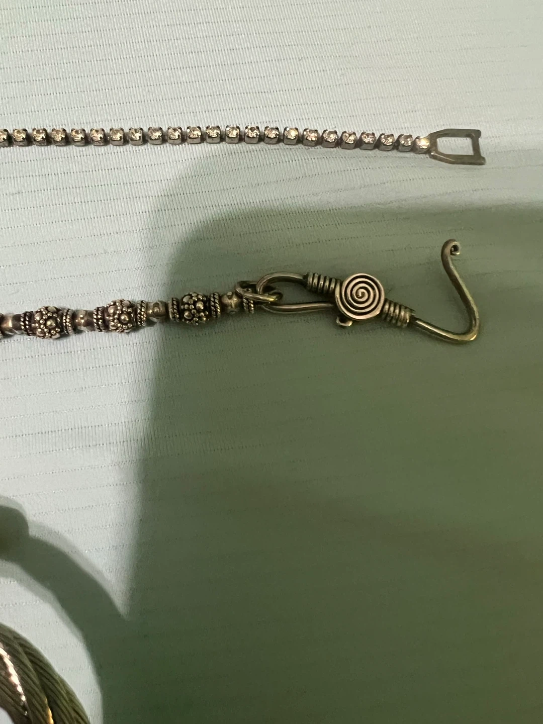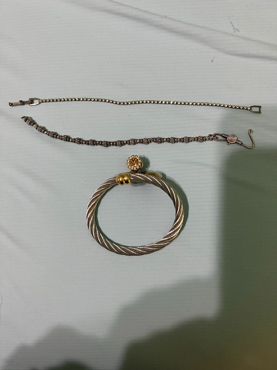 65Selling a lot of jewelry! Includes 2 bracelets, a bangle and a pin. All are in used condition but still have lots of life left