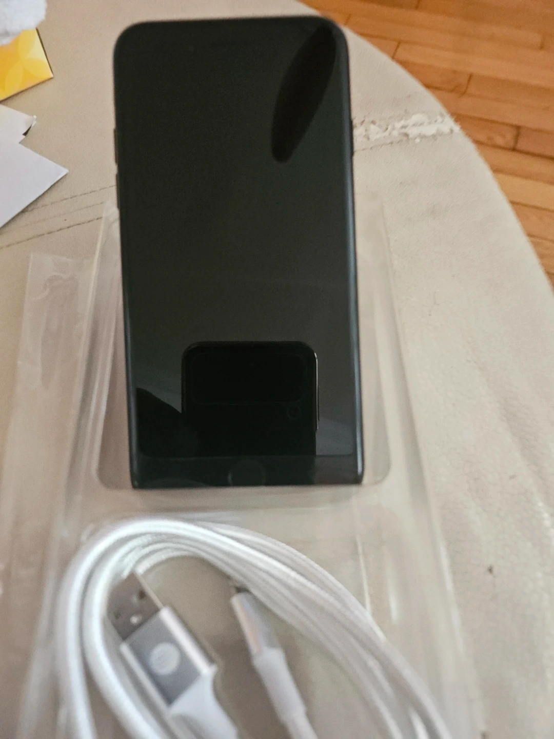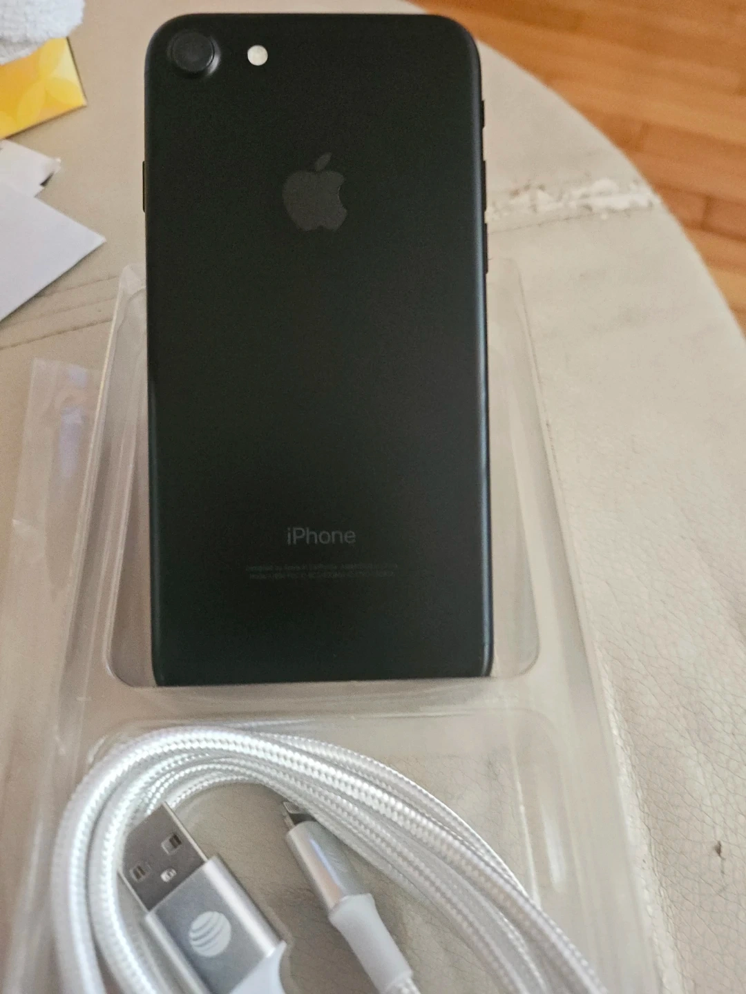 This is an Apple iPhone 7 with 32GB of storage in black. It's unlocked and has been used and is fully functioning. Includes charging cable.