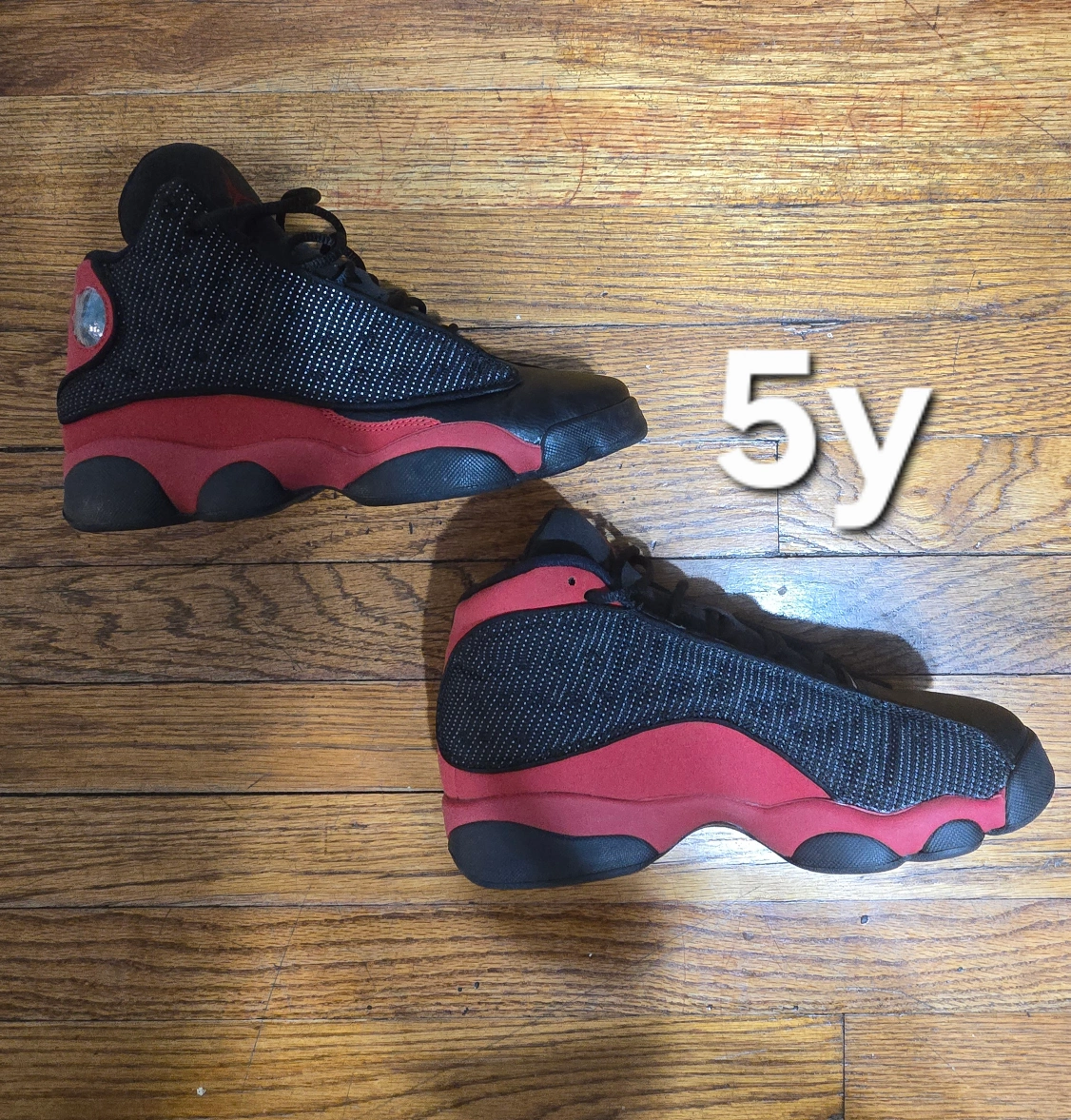 Selling a pair of Jordan 13 Retro sneakers in black and red! These are a youth size 5Y. They're semi new and have its box.