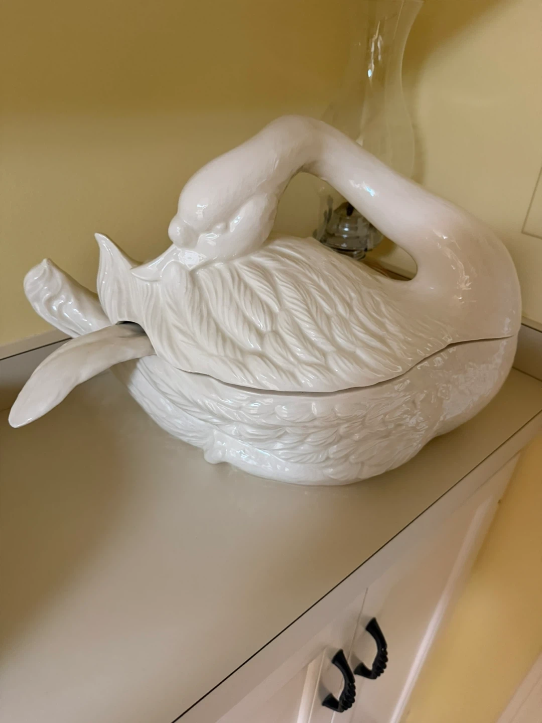 White Ceramic Swan Serving Dish with Lid and Spoon