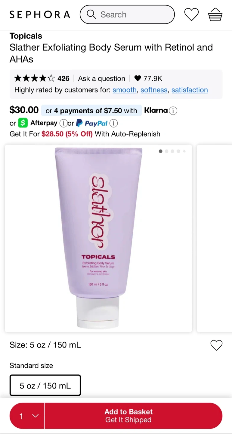 Selling a Topicals Slather Exfoliating Body Serum with Retinol and AHAs