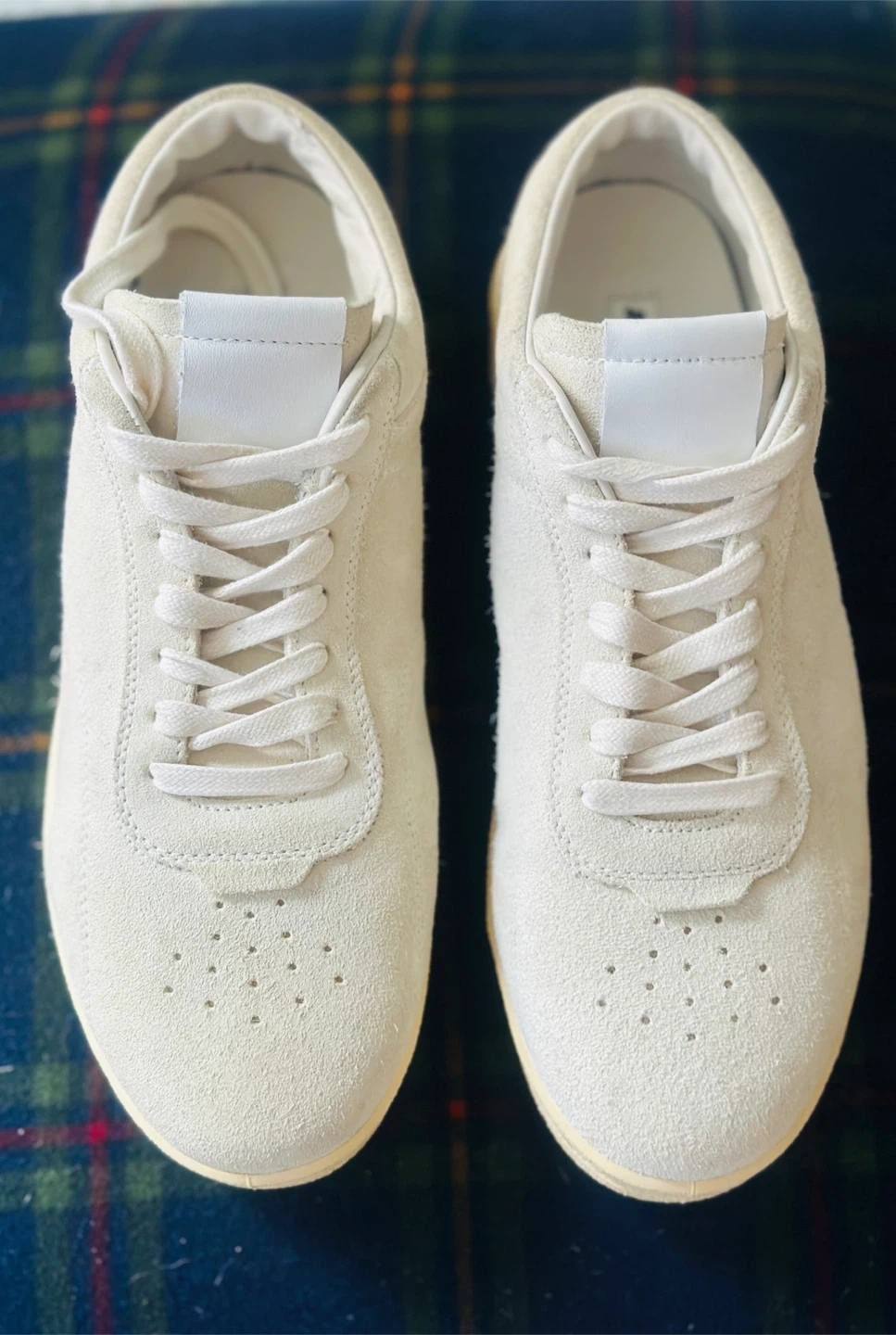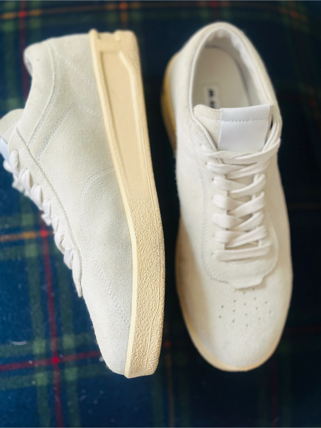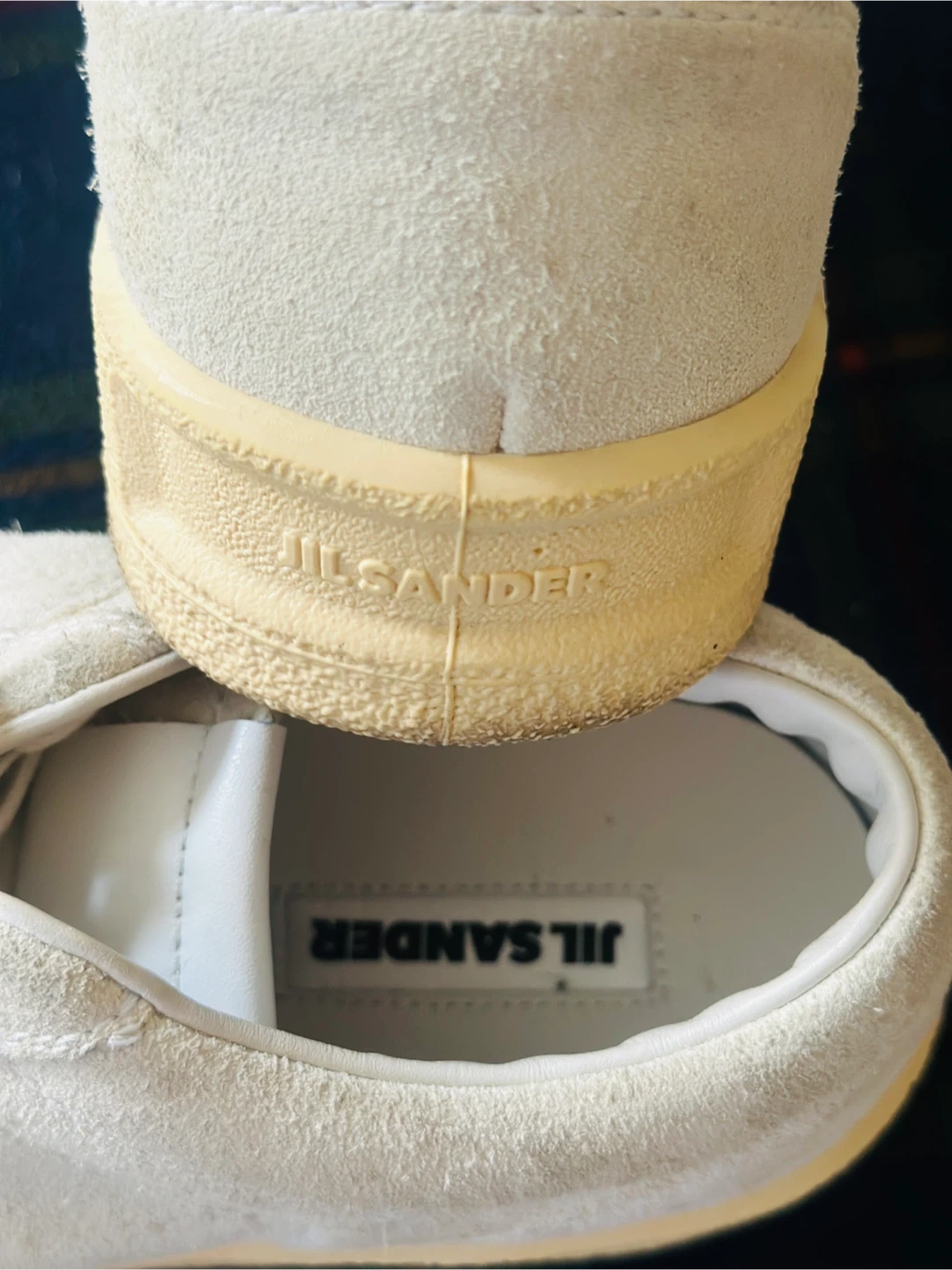 Selling a pair of Jil Sander sneakers in a cream suede. They're in great condition and ready for a new home! The minimalist design and high-quality materials make these a stylish and comfortable choice for everyday wear