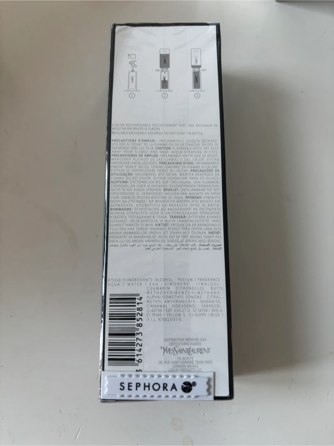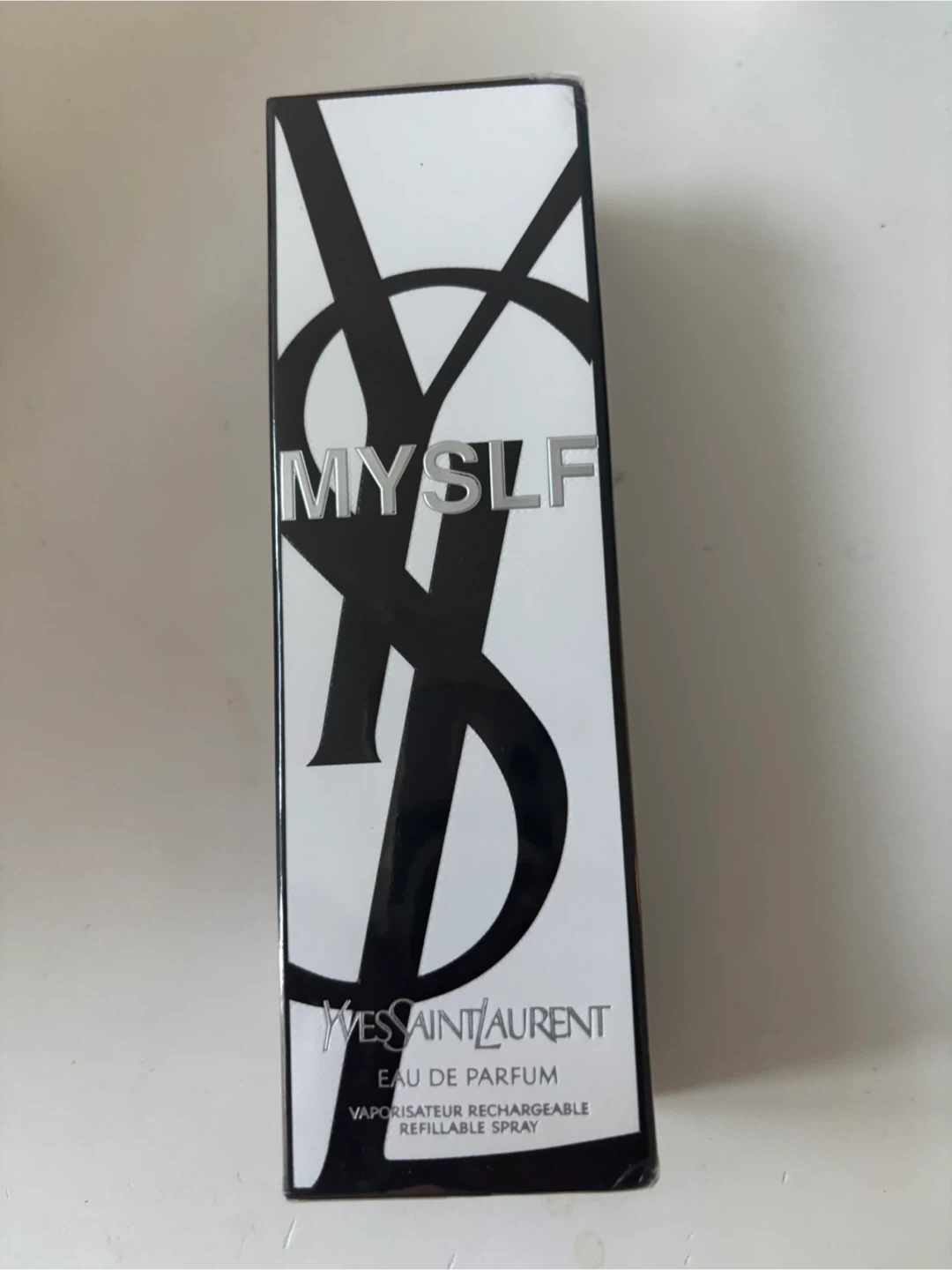 This is the Yves Saint Laurent MYSLF Eau de Parfum Refillable Spray. It's a refillable spray bottle. Alcohol, parfum/fragrance, aqua/water, limonene, linalool, coumarin, and geraniol are listed ingredients.