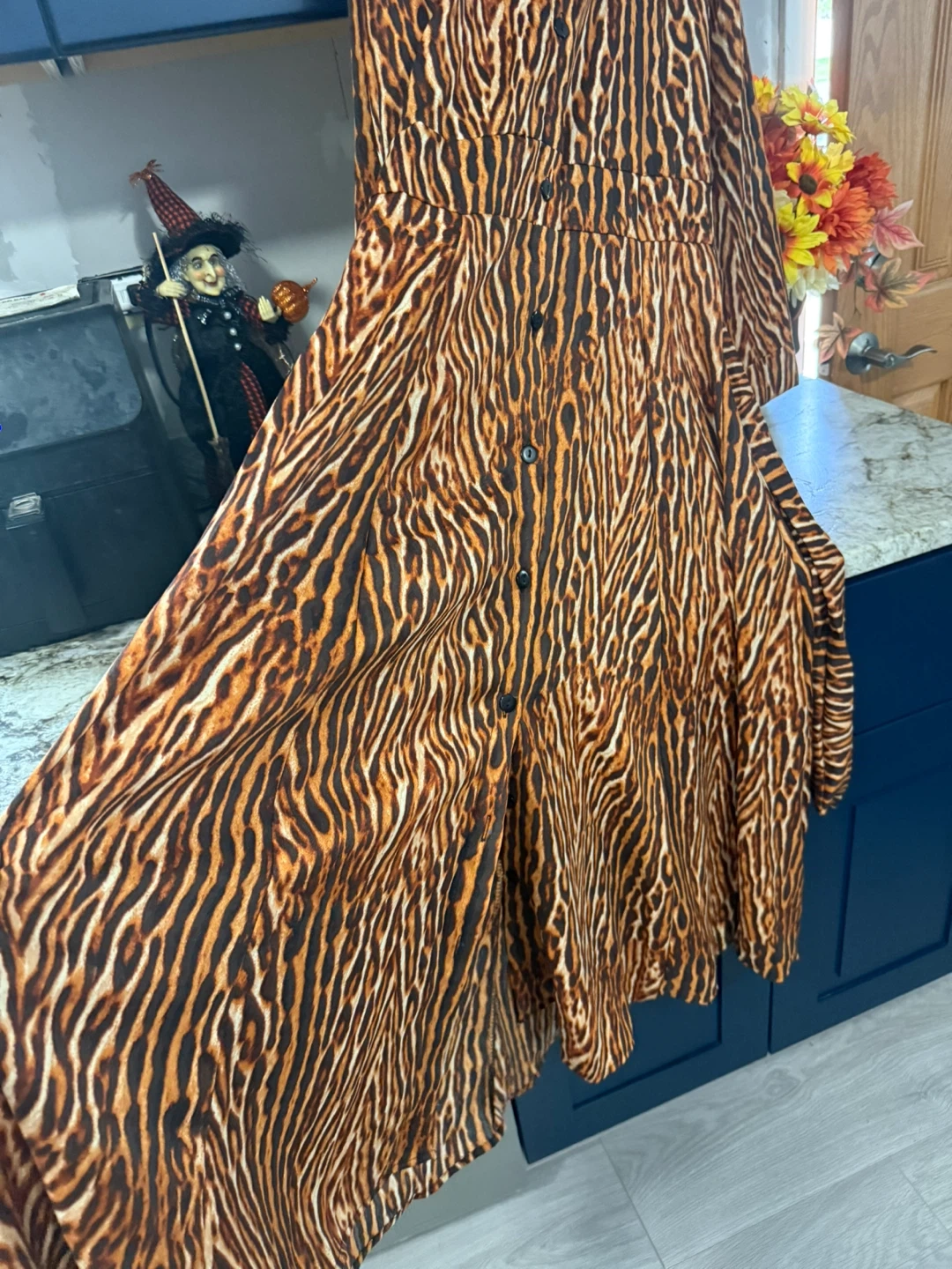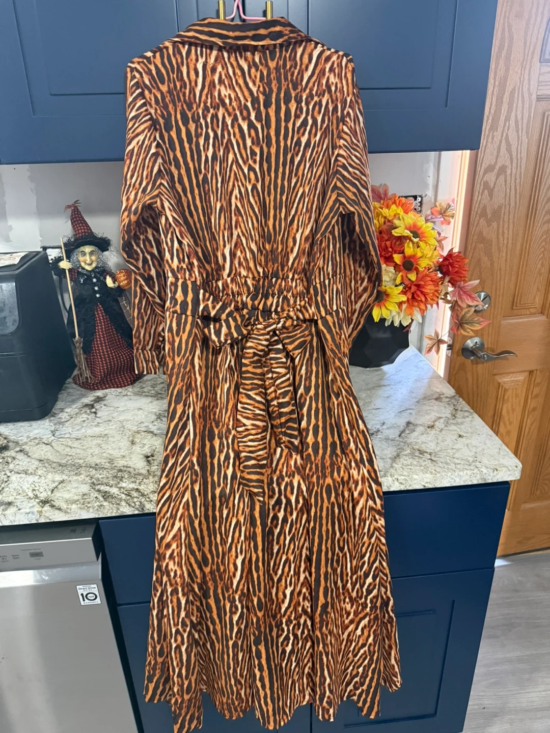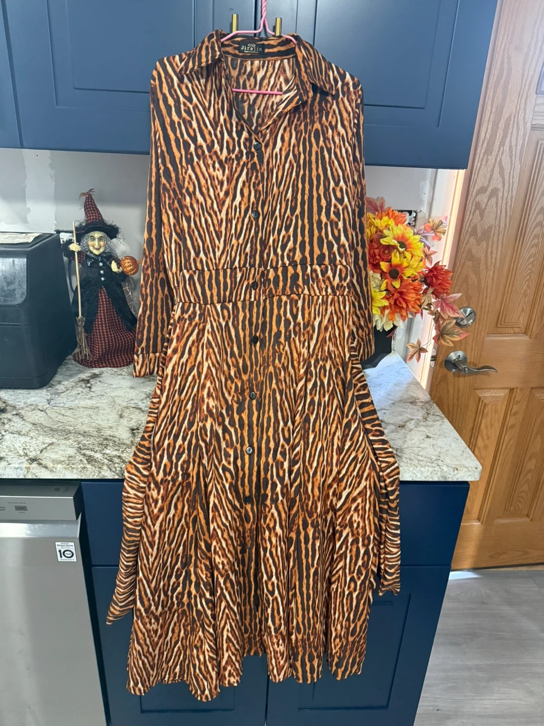 Like new very good condition clean only use one time This Jirajin dress features a striking animal print pattern. It has a button-down front and a tie at the waist to cinch the silhouette. Perfect for adding a bold statement to your wardrobe!