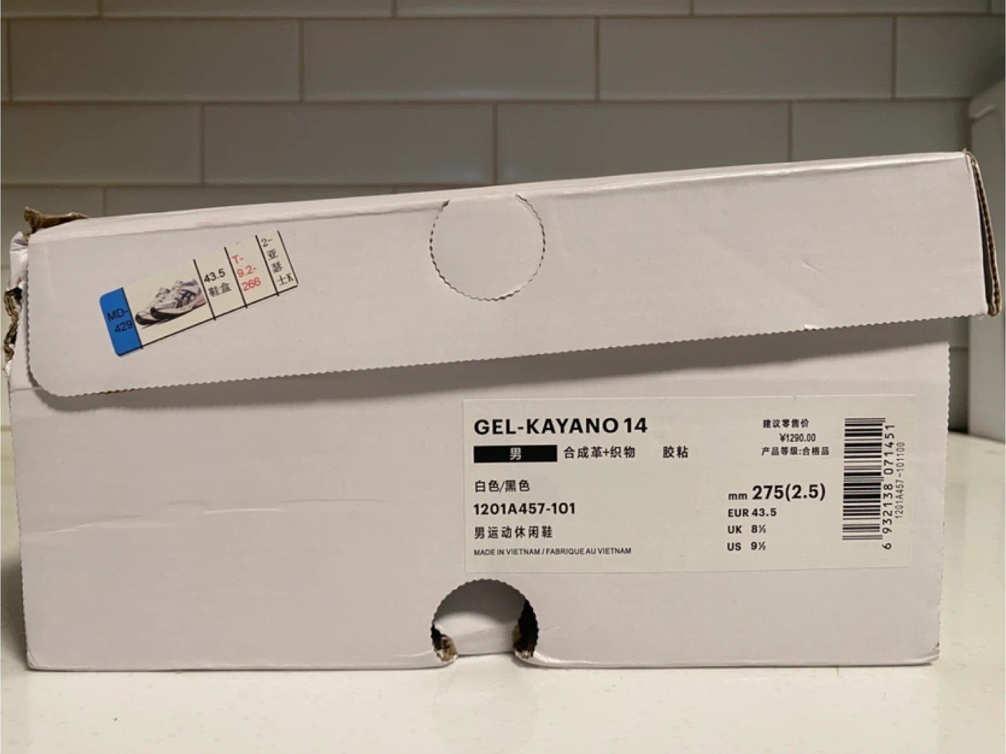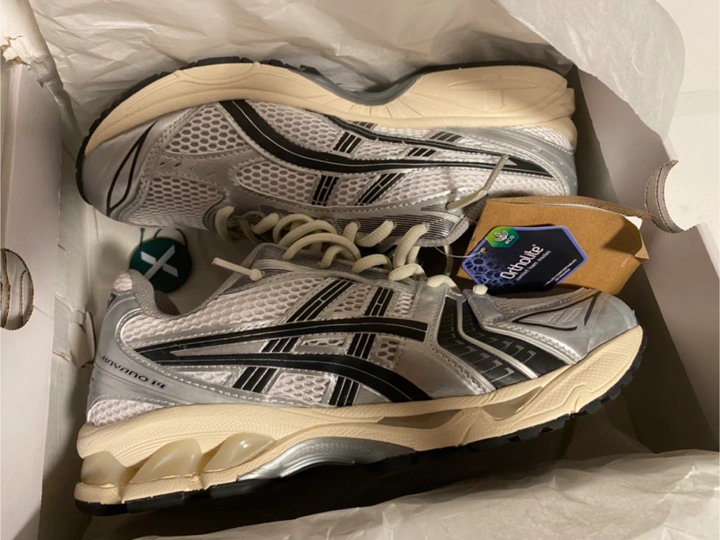 Model: ASICS GEL-KAYANO 14 Colorway: White/Black Style Code: 1201A457-101 Sizes: EUR 43.5, UK 8½, US 9½, mm 275(2.5) Type: Sportstyle Shoes, originally designed as a running shoe, now updated for everyday wear.