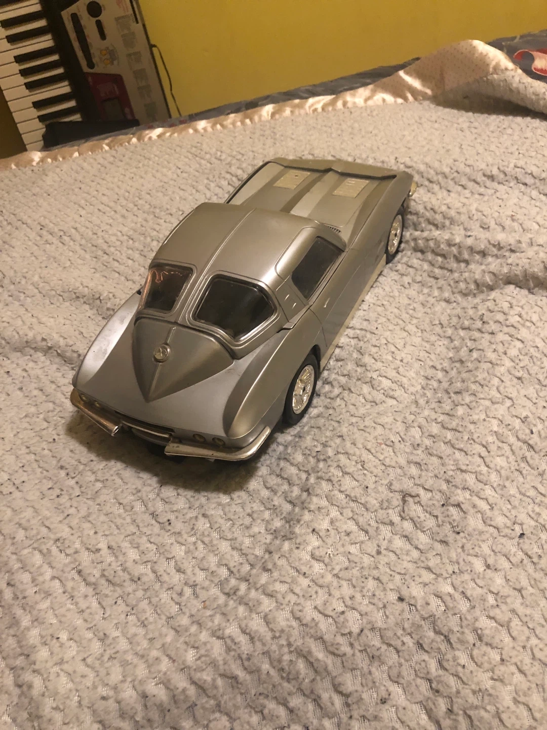 This is a diecast model of a 1963 Corvette. It's silver with a "63VETTE" California license plate. Made of metal and plastic. I am open to negotiation.