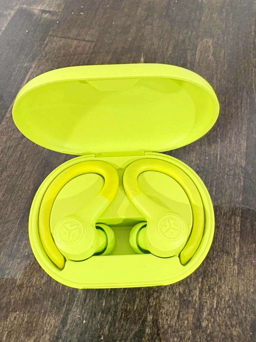 Selling a pair of JLab GO Air Sport earbuds in lime green! They come with their charging case. These are lightweight and portable, perfect for workouts or everyday use