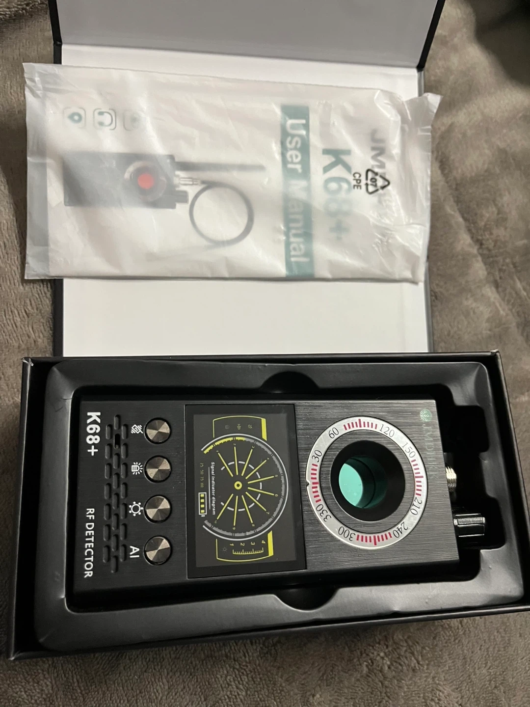 60Selling a NEW JMDHKK K68+ Anti Spy Detector in black! It's an RF Bug Detector that helps protect you from potential privacy leaks. It comes with the box and user manual. Originally bought for $87.99!