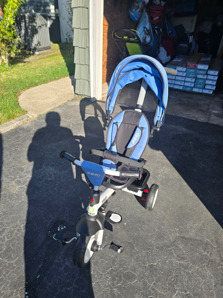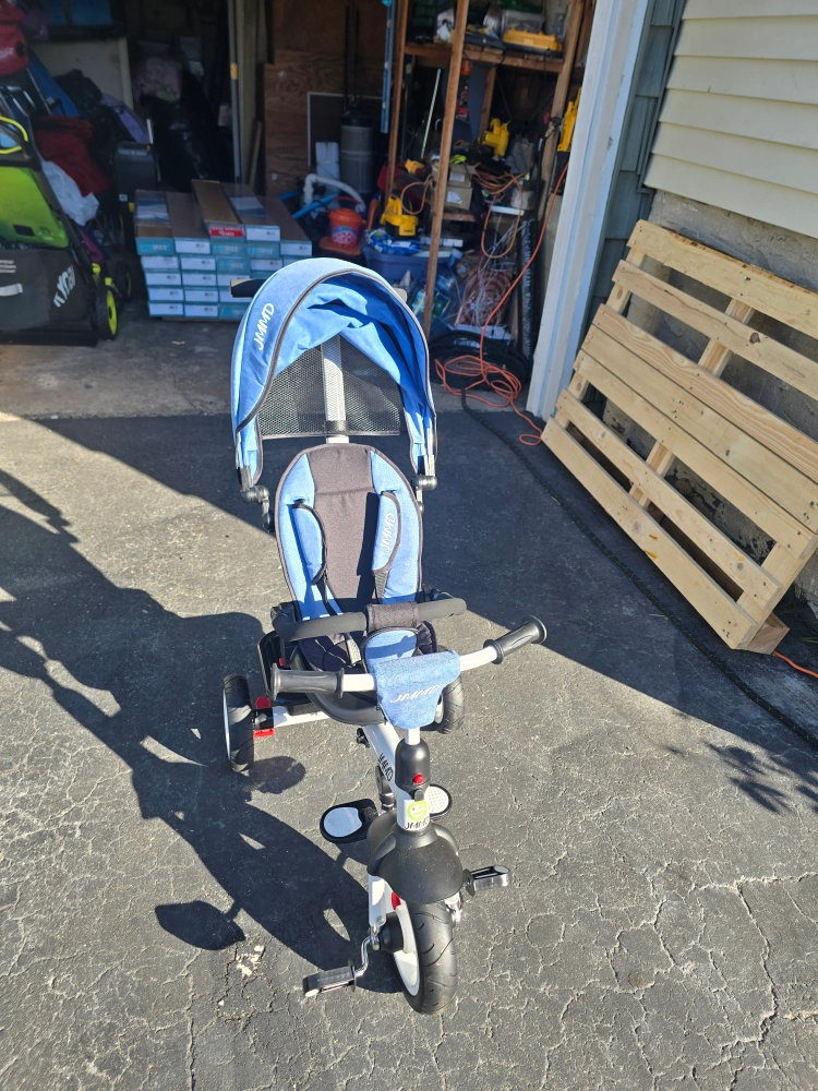 Selling a JMND toddler tricycle in blue! It's in great condition and ready for a new home. Perfect for little ones learning to ride and explore the outdoors