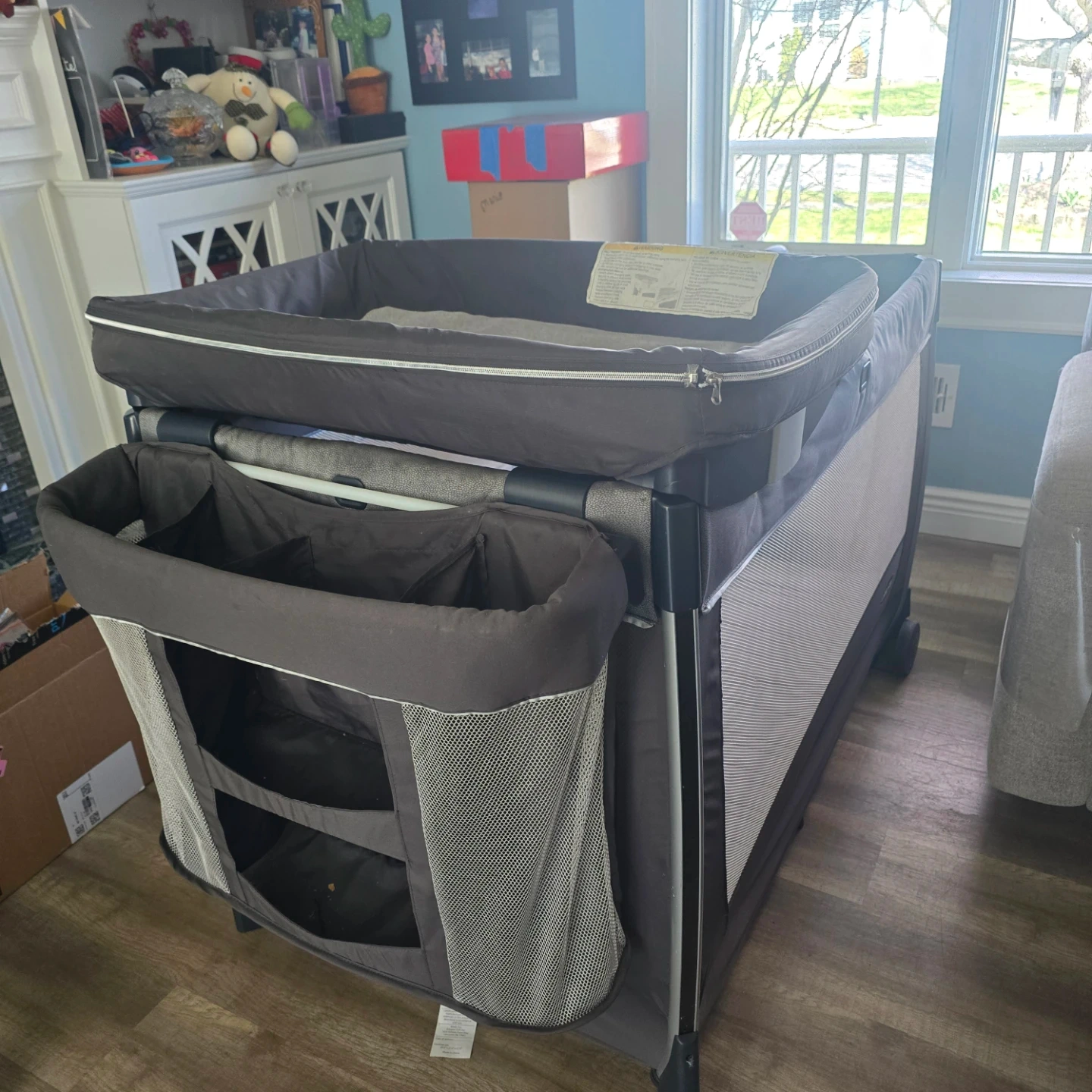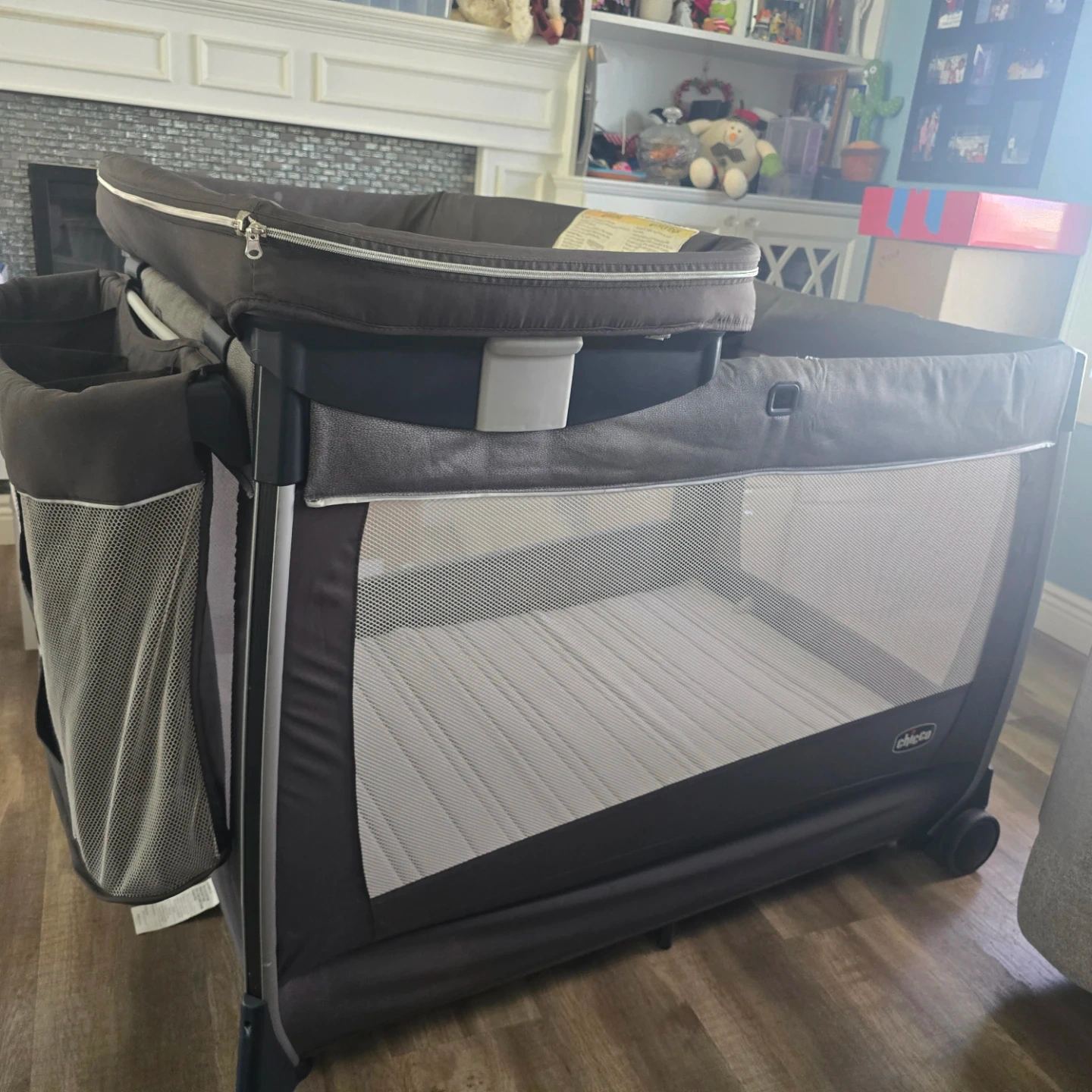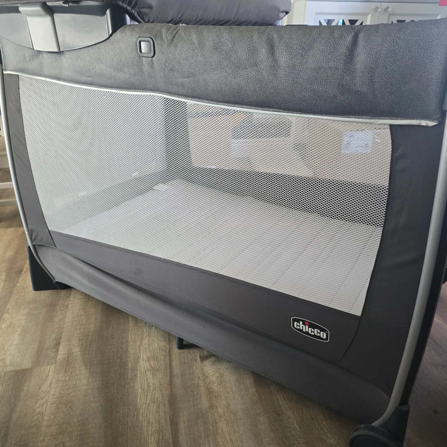 This Chicco playard is perfect for travel or home use. It features a bassinet attachment and organizer pockets for convenience. The mesh sides ensure good ventilation. Easy to assemble and disassemble!