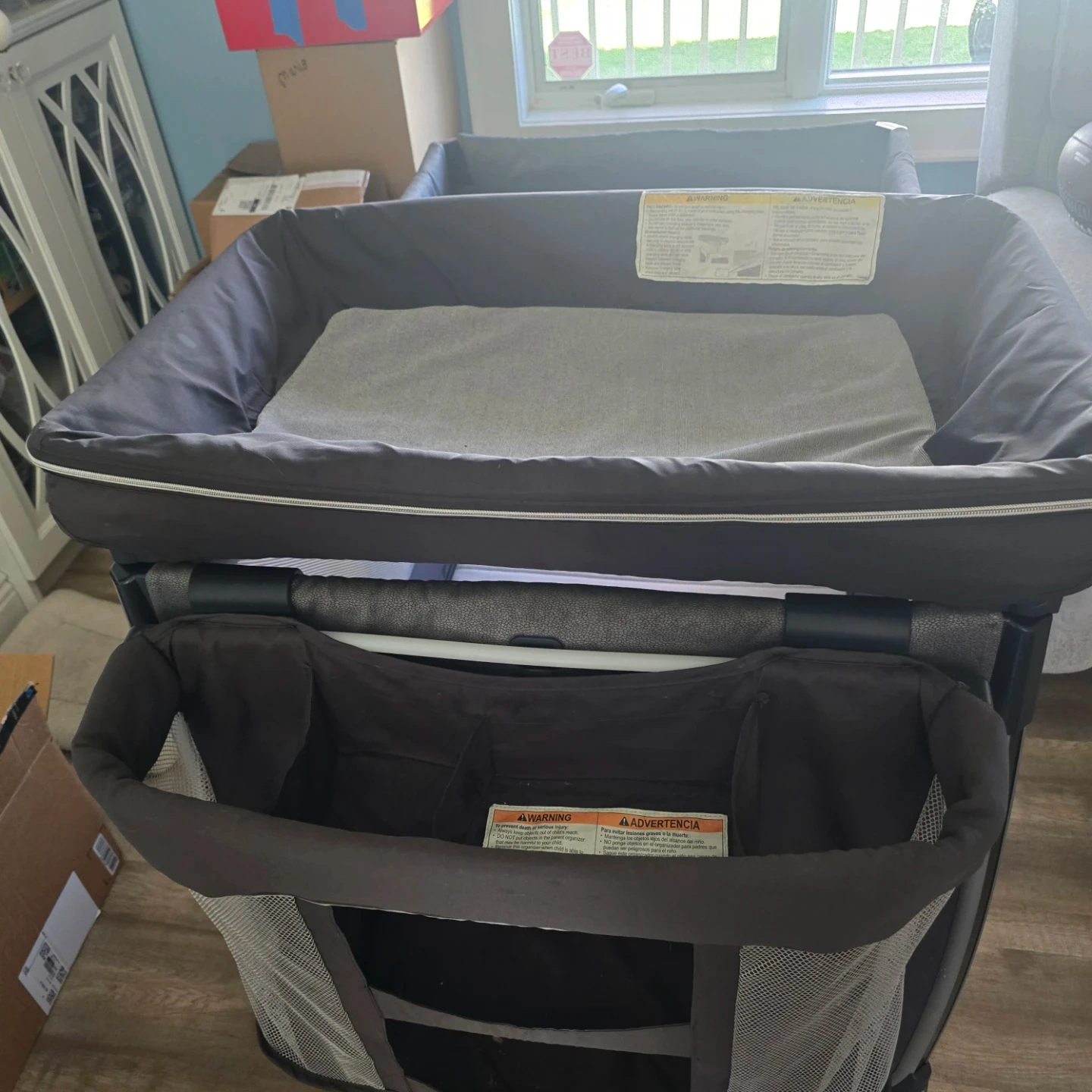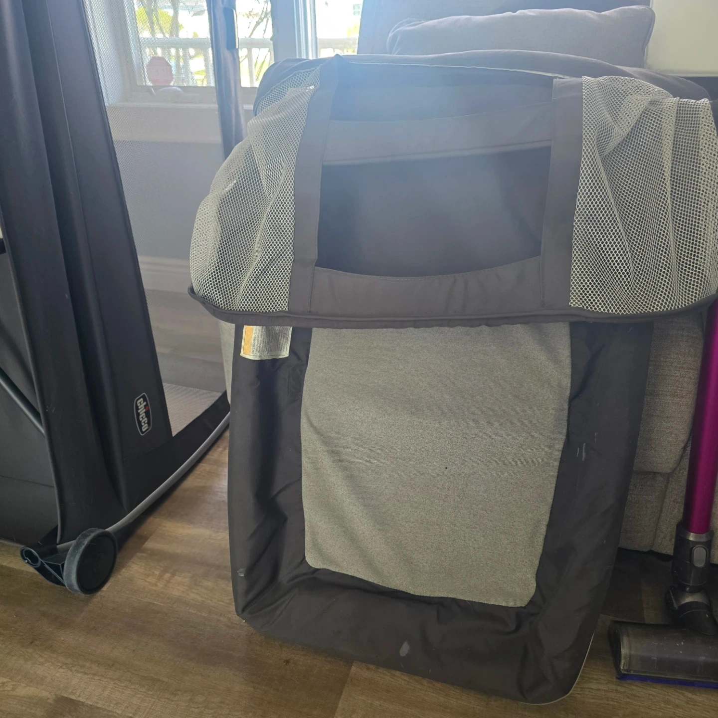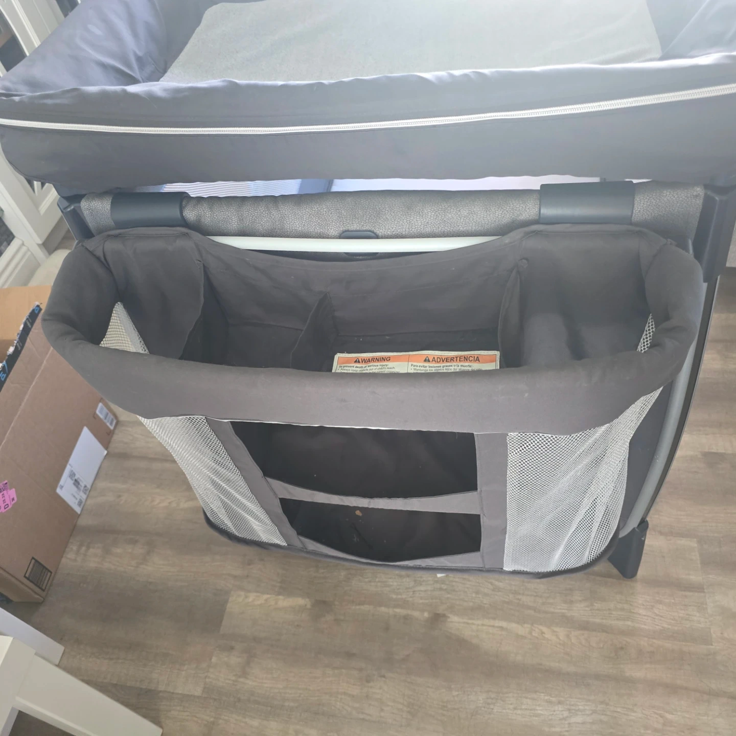 This Chicco playard is perfect for travel or home use. It features a bassinet attachment and organizer pockets for convenience. The mesh sides ensure good ventilation. Easy to assemble and disassemble!