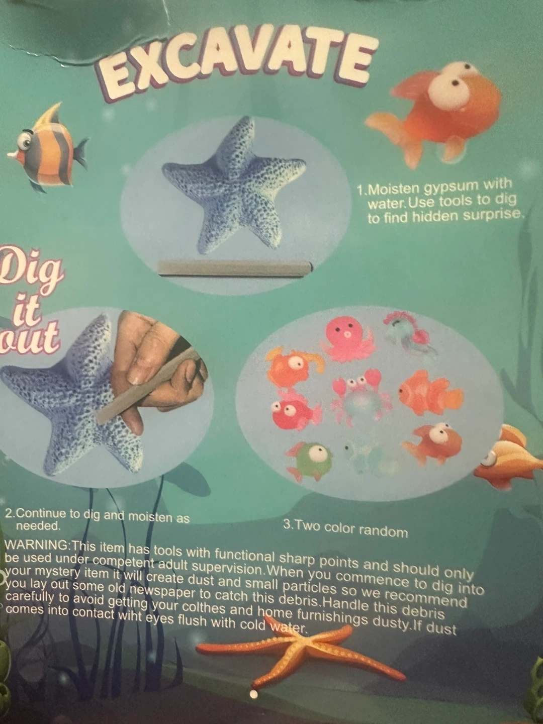 Excavate Marine Life Series Blind Box, perfect for ages 6 and up! Dig it out and find a surprise inside; it's a two-color random mystery item. The box includes tools with functional sharp points, so adult supervision is recommended. Lay out some old newspaper to catch the dust and small particles when you commence to dig into your mystery item