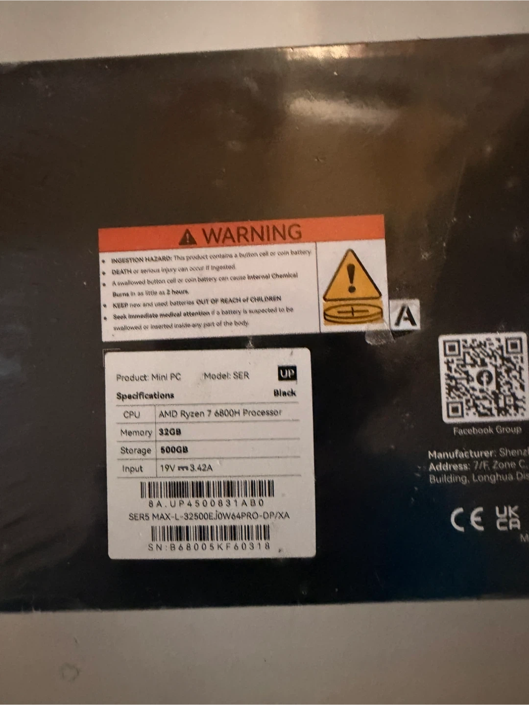 Selling a SER5 MAX 6800U Mini PC. It comes with: