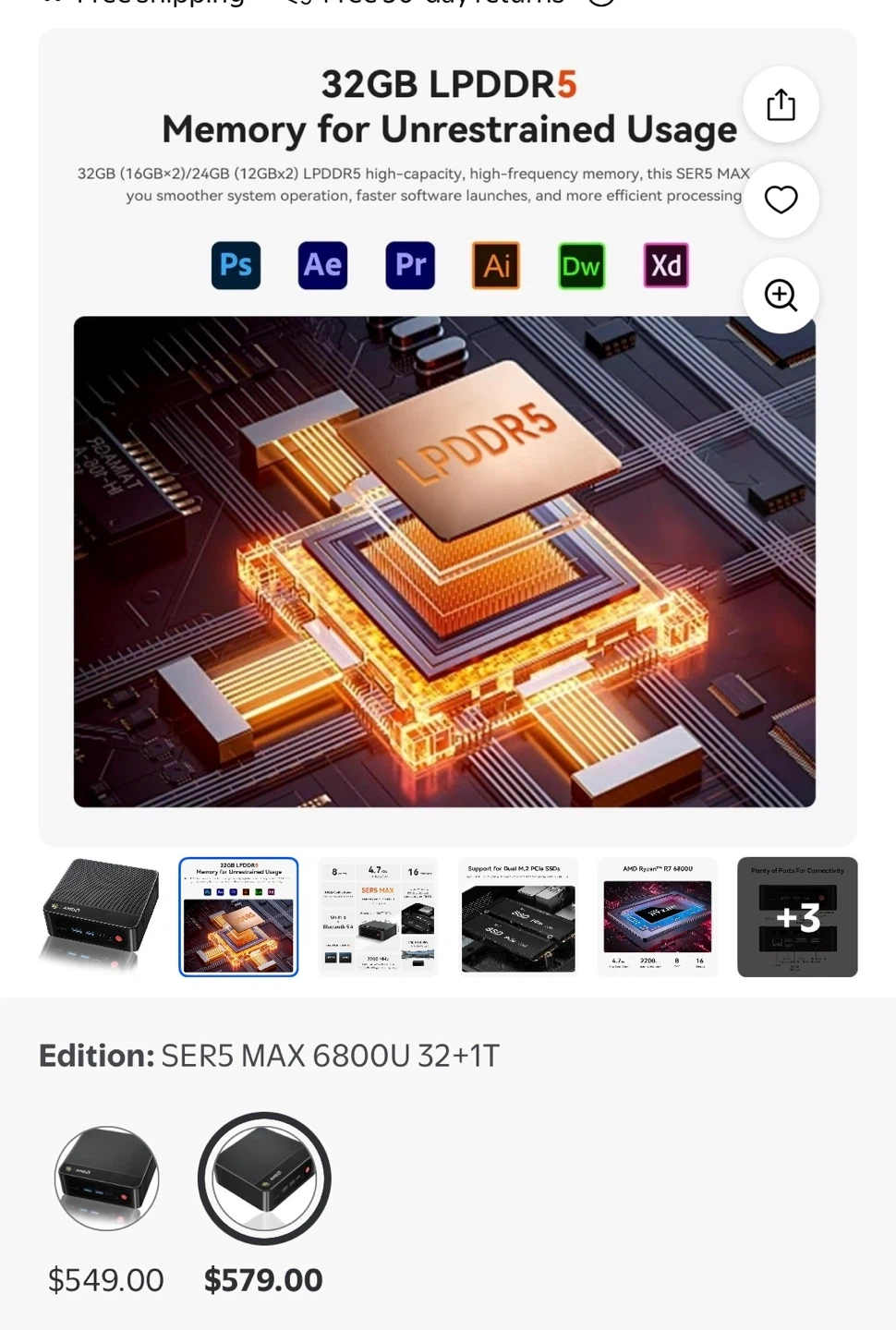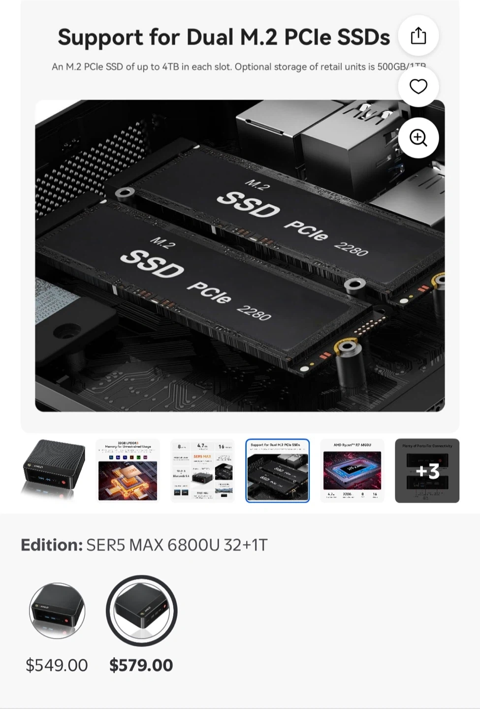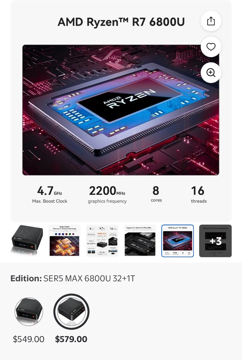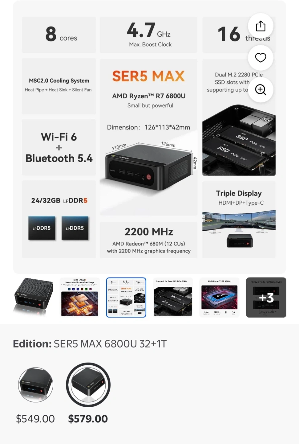SER5 MAX 6800U Mini PC - 32GB RAM, 500GB SSD