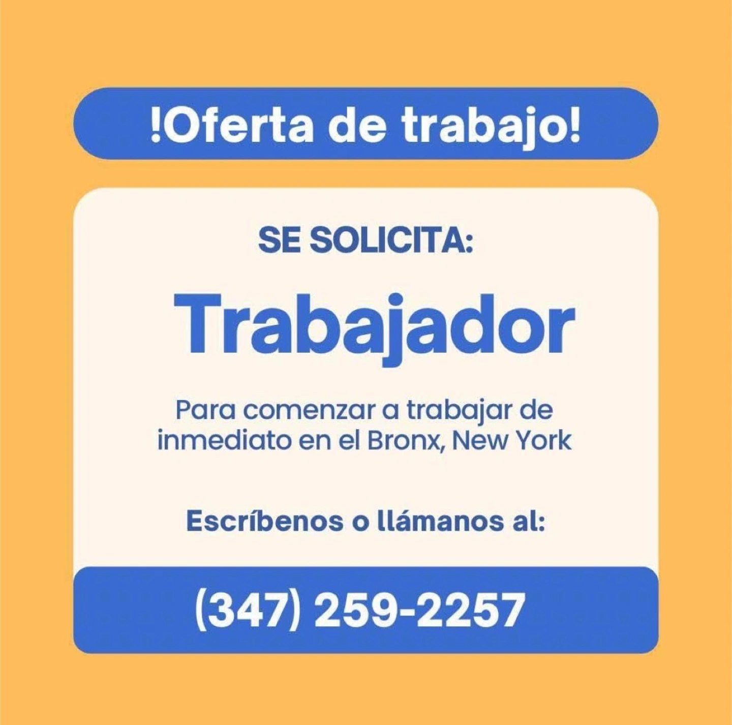 Vacante inmediato en el Bronx, Nueva York. Para más información, contáctenos al (929) 631 0124. Preguntar por la liz Pérez
