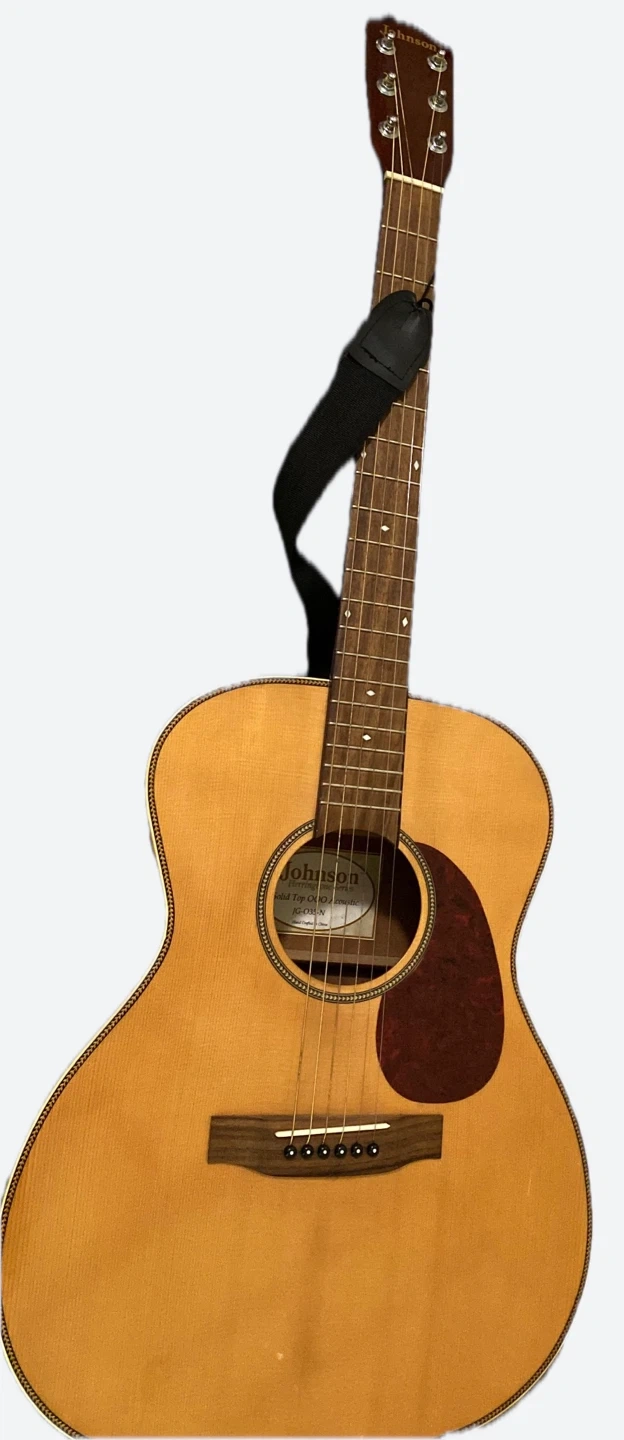 Selling a Johnson JG-035-N acoustic guitar. It's in good condition and ready for a new home. Comes with a strap!