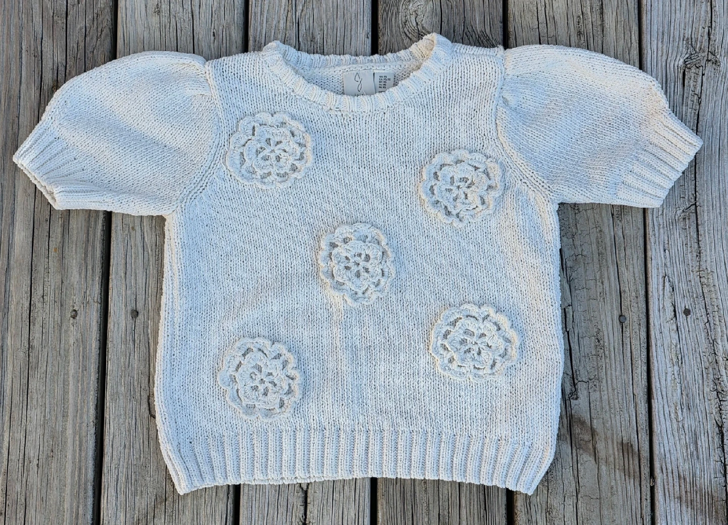20This is a cream-colored knit top from Joie. It's a size XS and features a lovely floral design. Perfect for adding a touch of elegance to your wardrobe! shows minor signs of wear. Pick up in Naperville near naper blvd and 87th street or near downtown Naperville off of Chicago and Charles