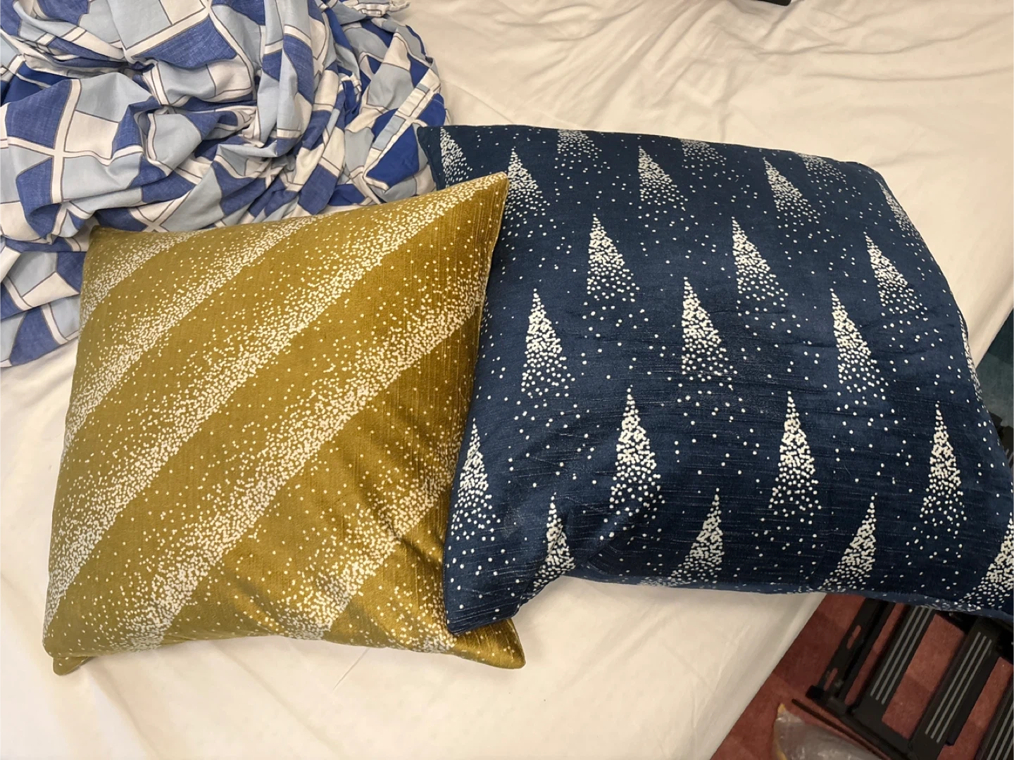 14Small yellow Vapor pillow 18" x 18" Big blue Fireworks pillow 20” x 20” Originally $133 for both pillows. Moving sale, can bundle multiple items for lower price. Please check out my profile https://us.karrotmarket.com/u/LQyX7b41EPnZlEK6?