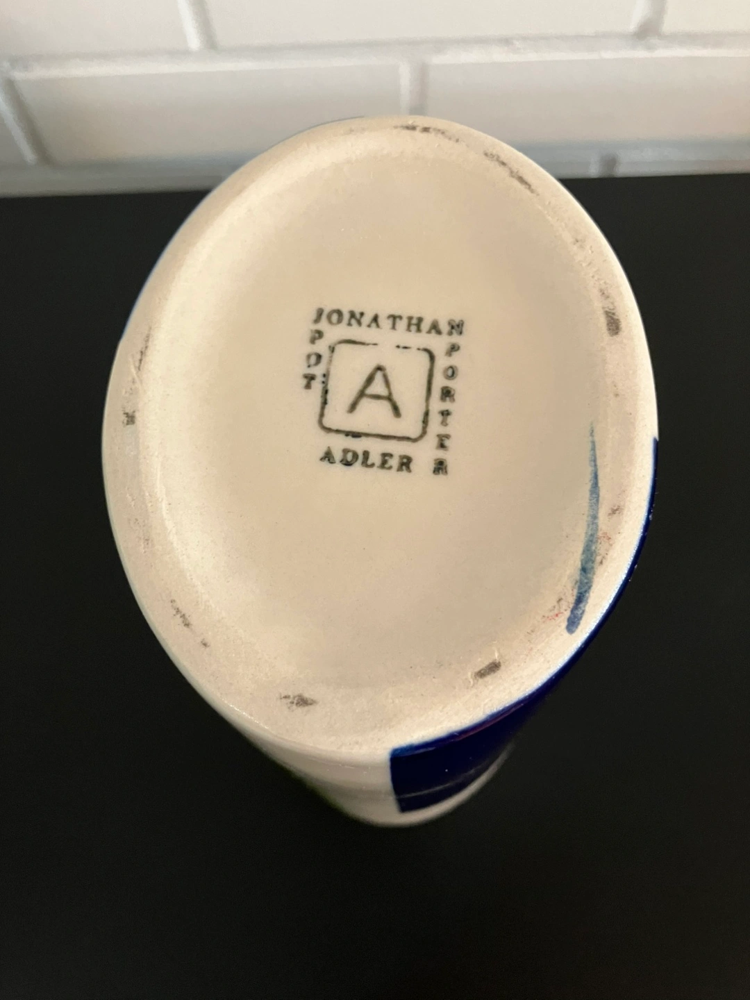 Jonathan Adler vase from his earlier collections. Excellent Condition. 4.5 inches width, 7.5 inches height