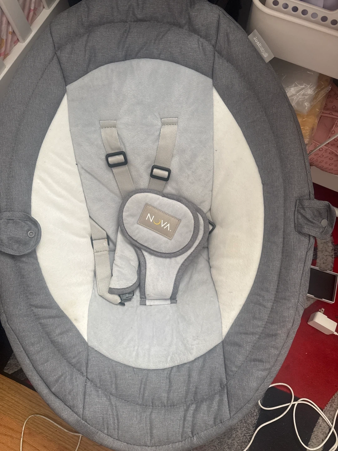 75Selling a Joolz x Nova baby bouncer in grey. It has a safety harness and is in good condition.