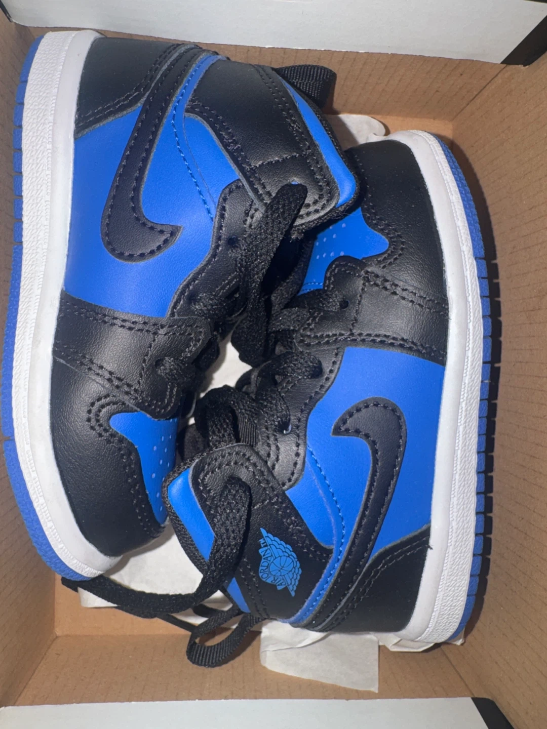 65Selling a pair of Jordan 1 Mid shoes in royal blue and black for toddlers. These are in great condition and come in the original box. Perfect for your little one to step out in style!