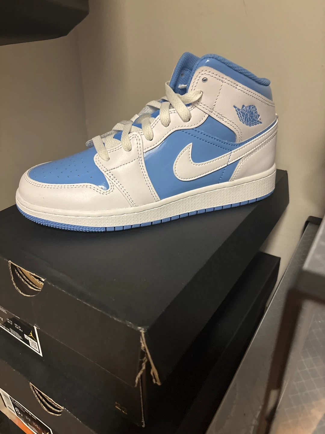 White and baby blue Jordans 1 mids-Boys Size 6/Womens Size 8- Brand New