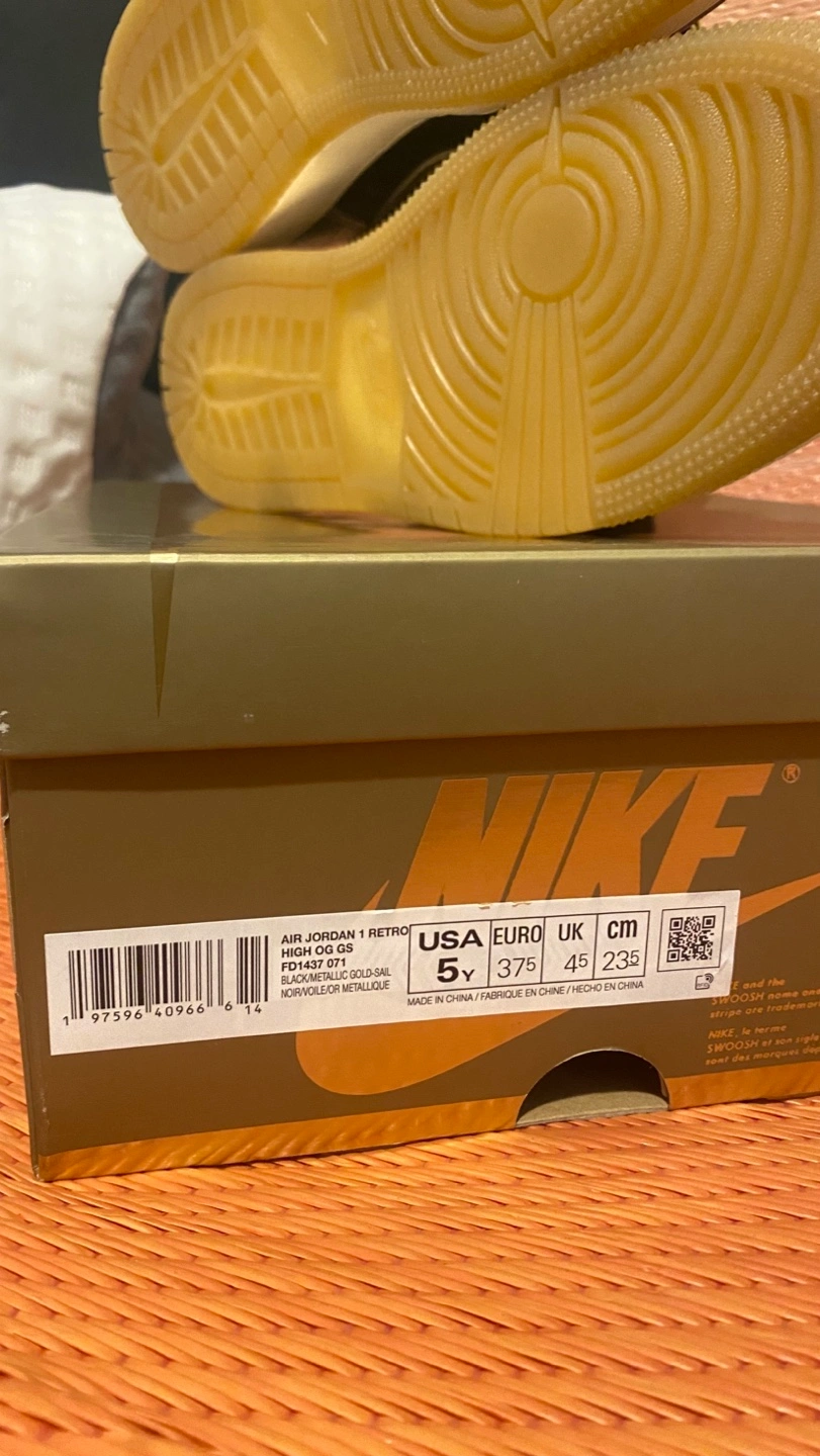 Jordan 1 Retro High OG GS 'Black Metallic Gold size, 5Y New in a box