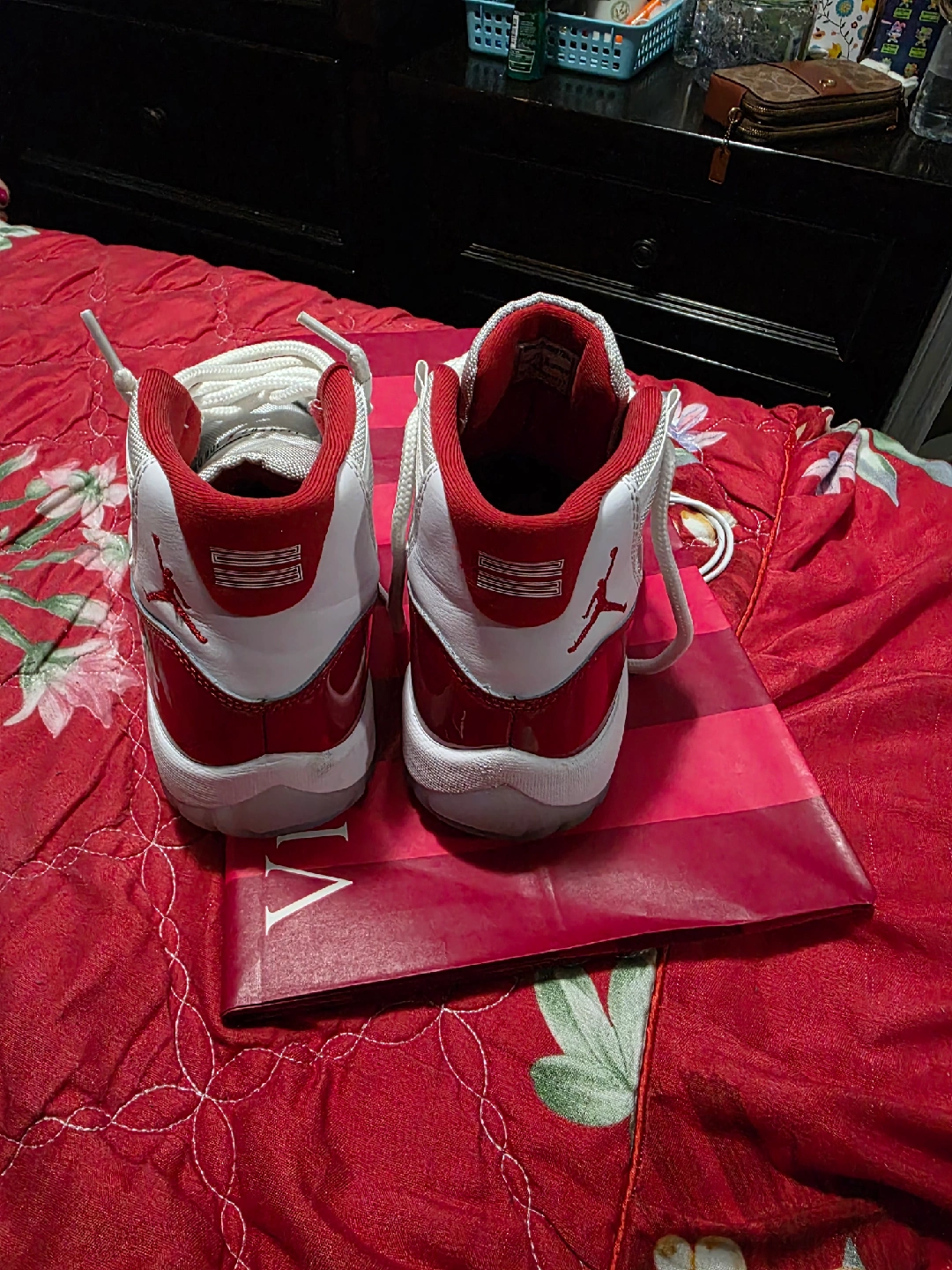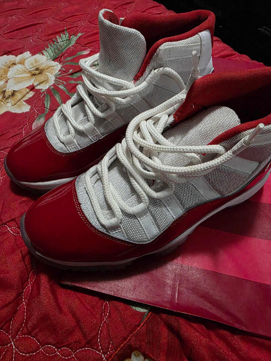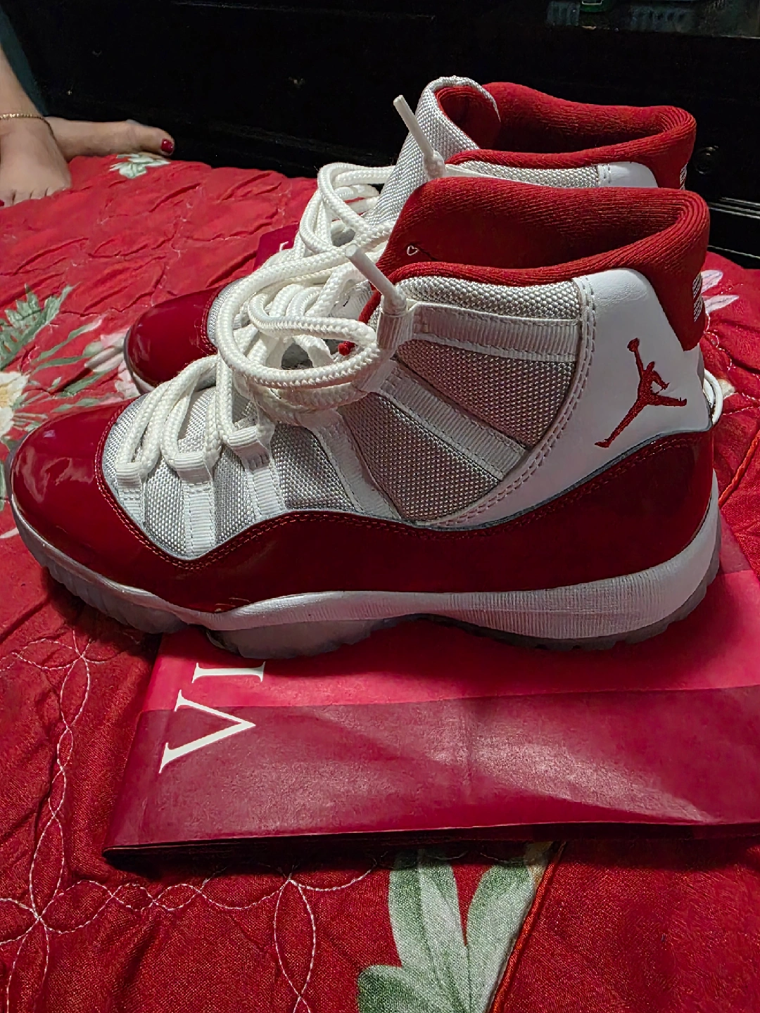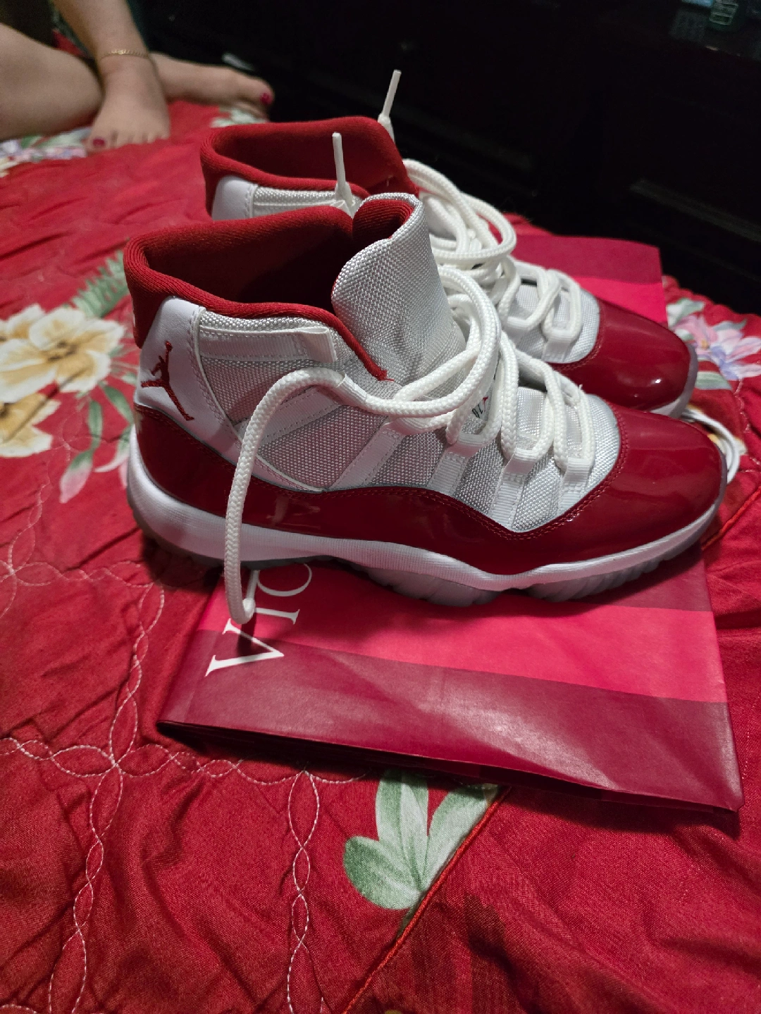 Selling a pair of Jordan 11 Retro in Cherry Red. These shoes are in great condition and ready for a new home! The classic design and vibrant color make them a standout addition to any sneaker collection
